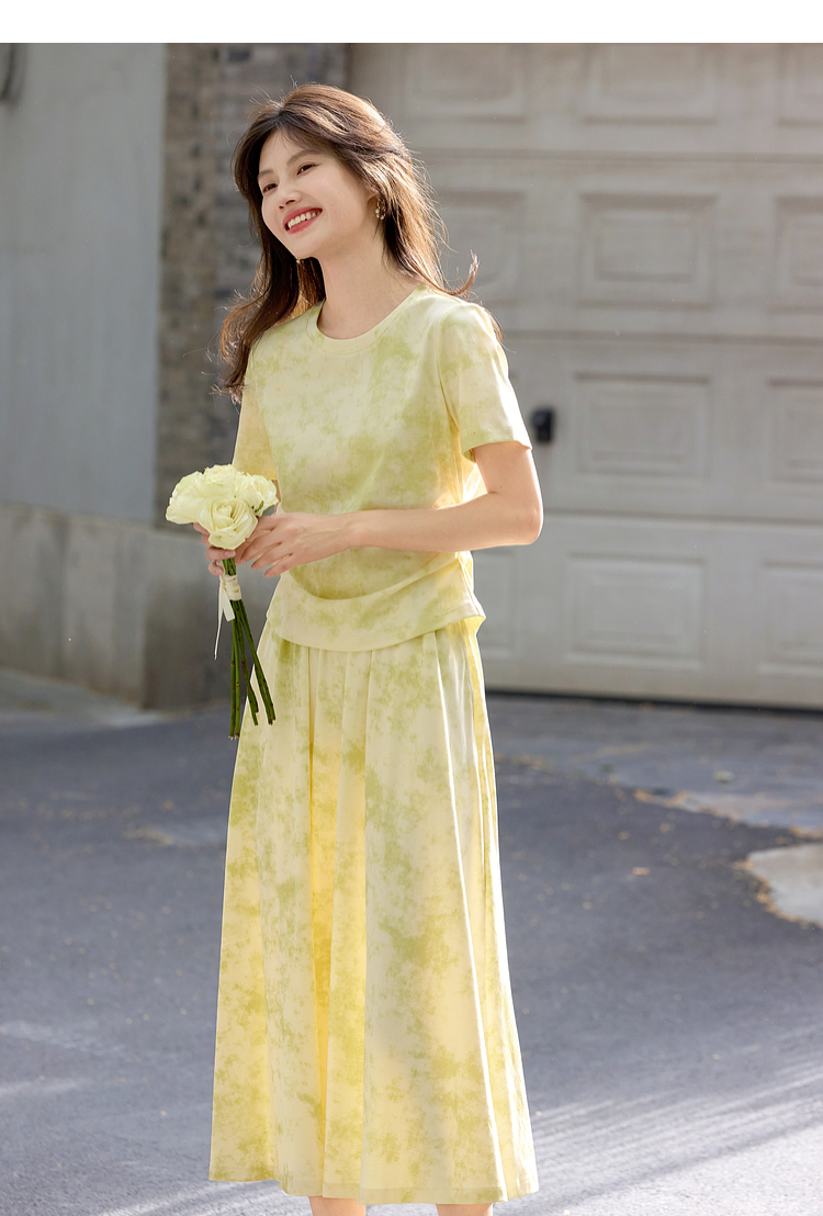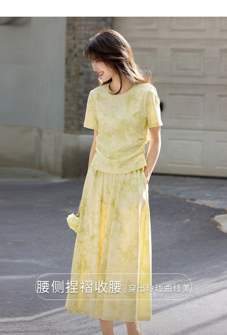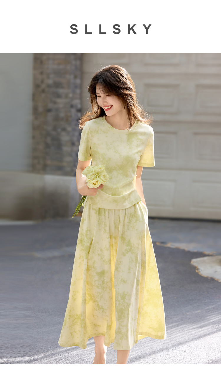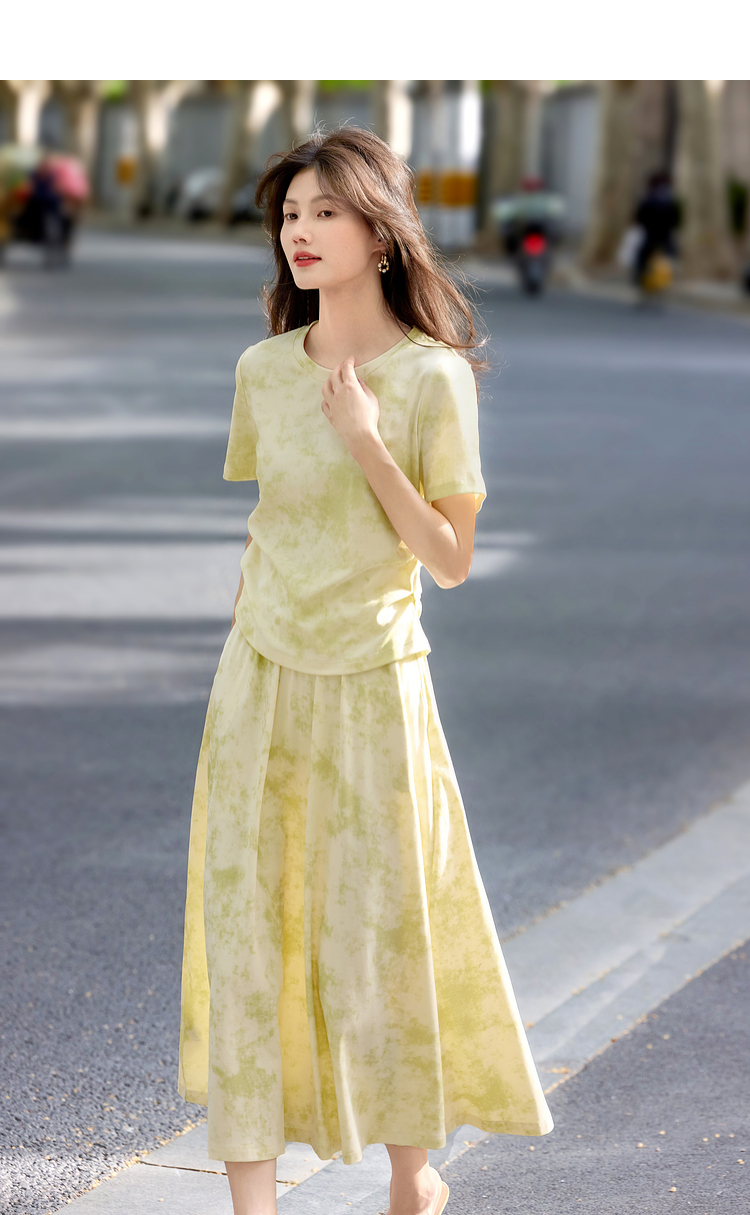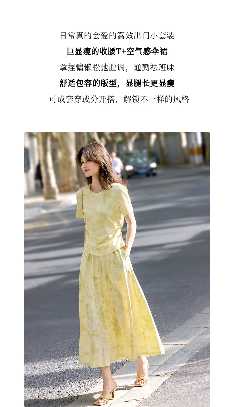 熙世界巨好看的夏装套装女2025新款艺术晕染短袖T恤半身裙两件套