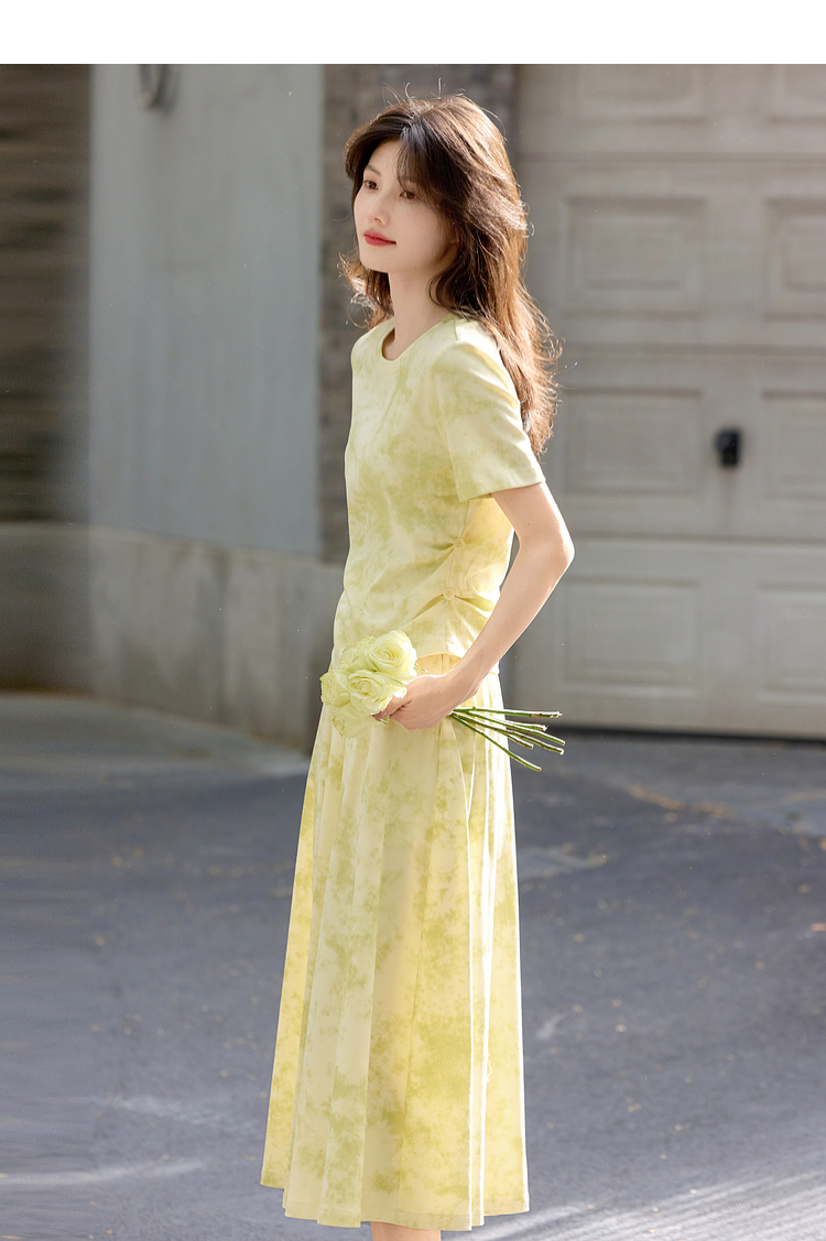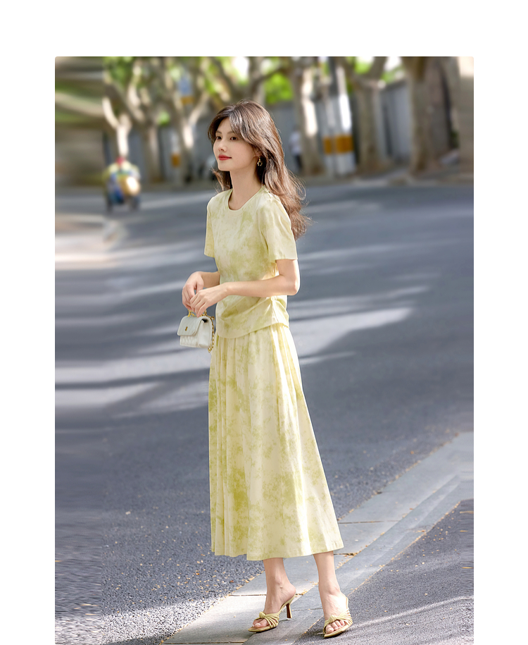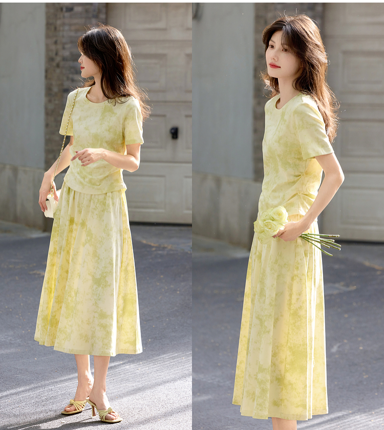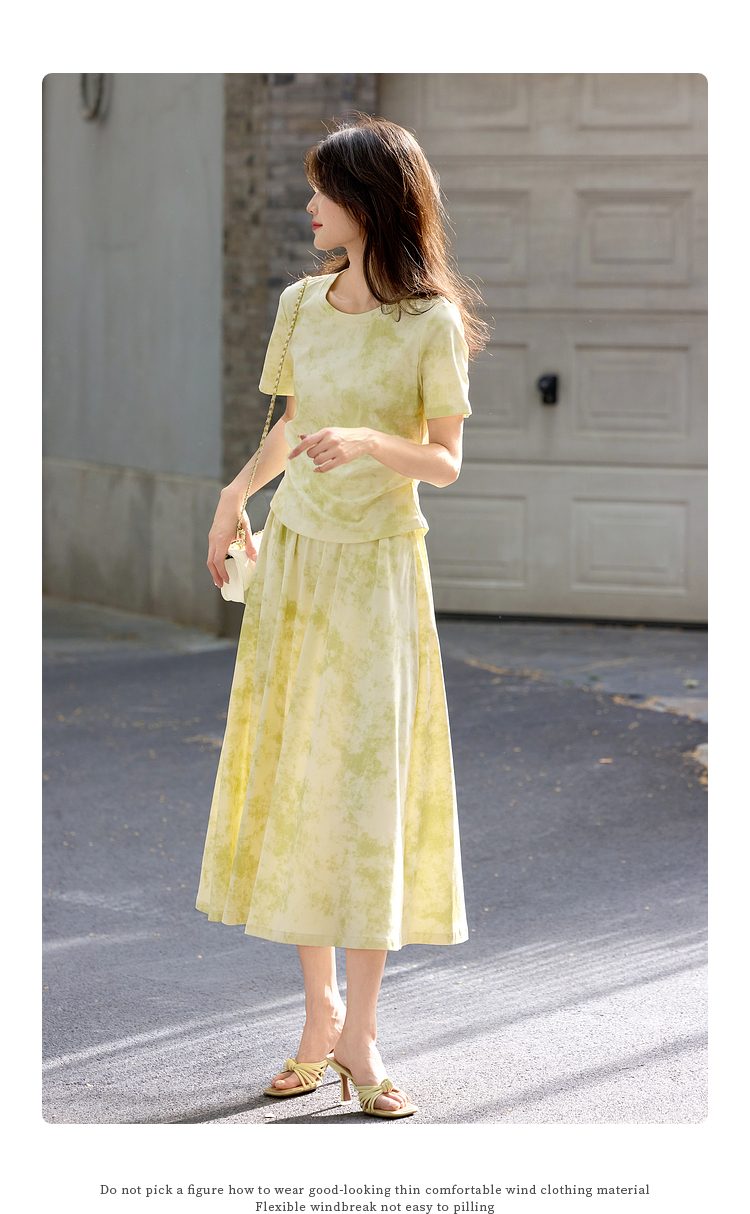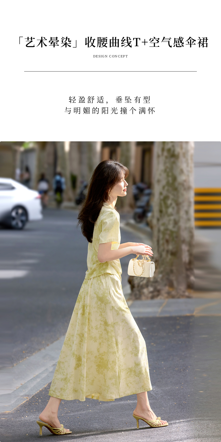熙世界巨好看的夏装套装女2025新款艺术晕染短袖T恤半身裙两件套