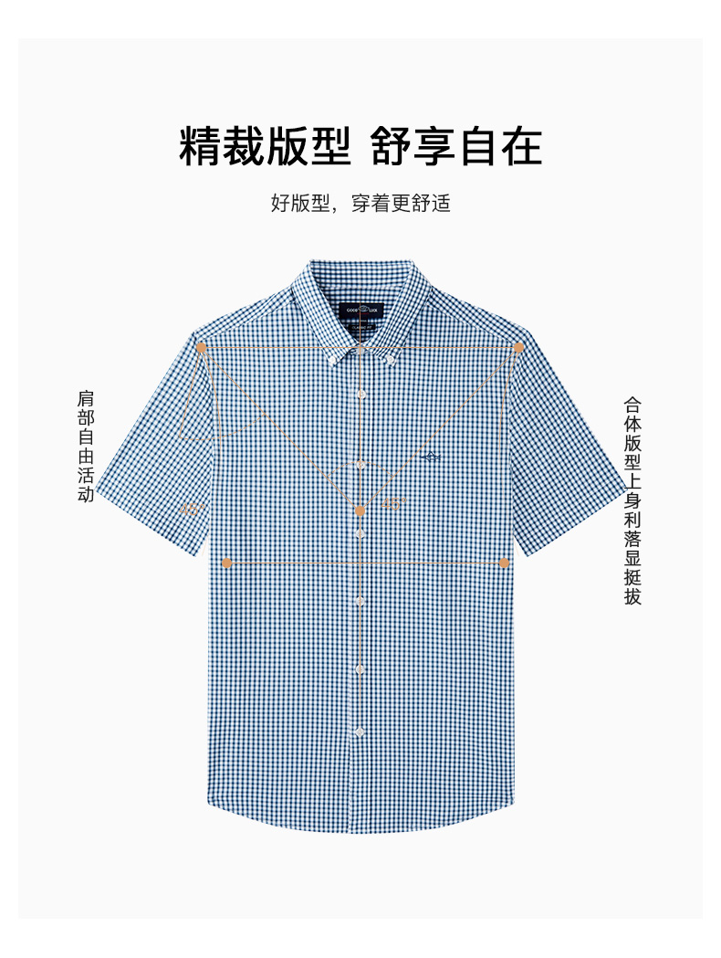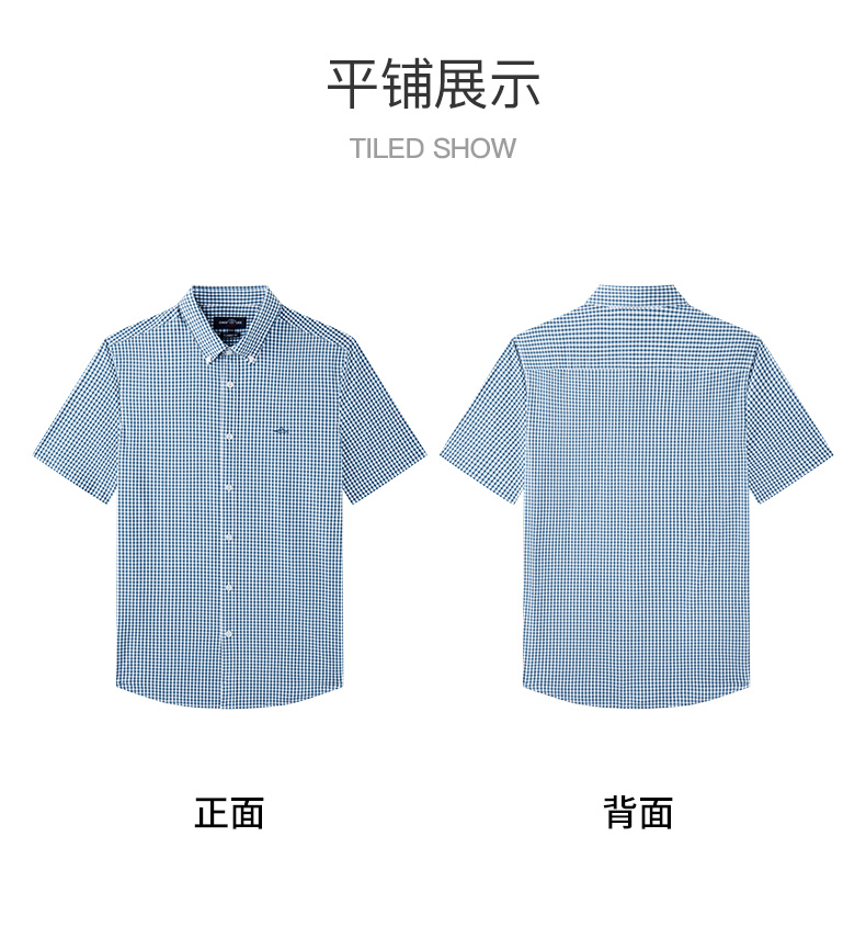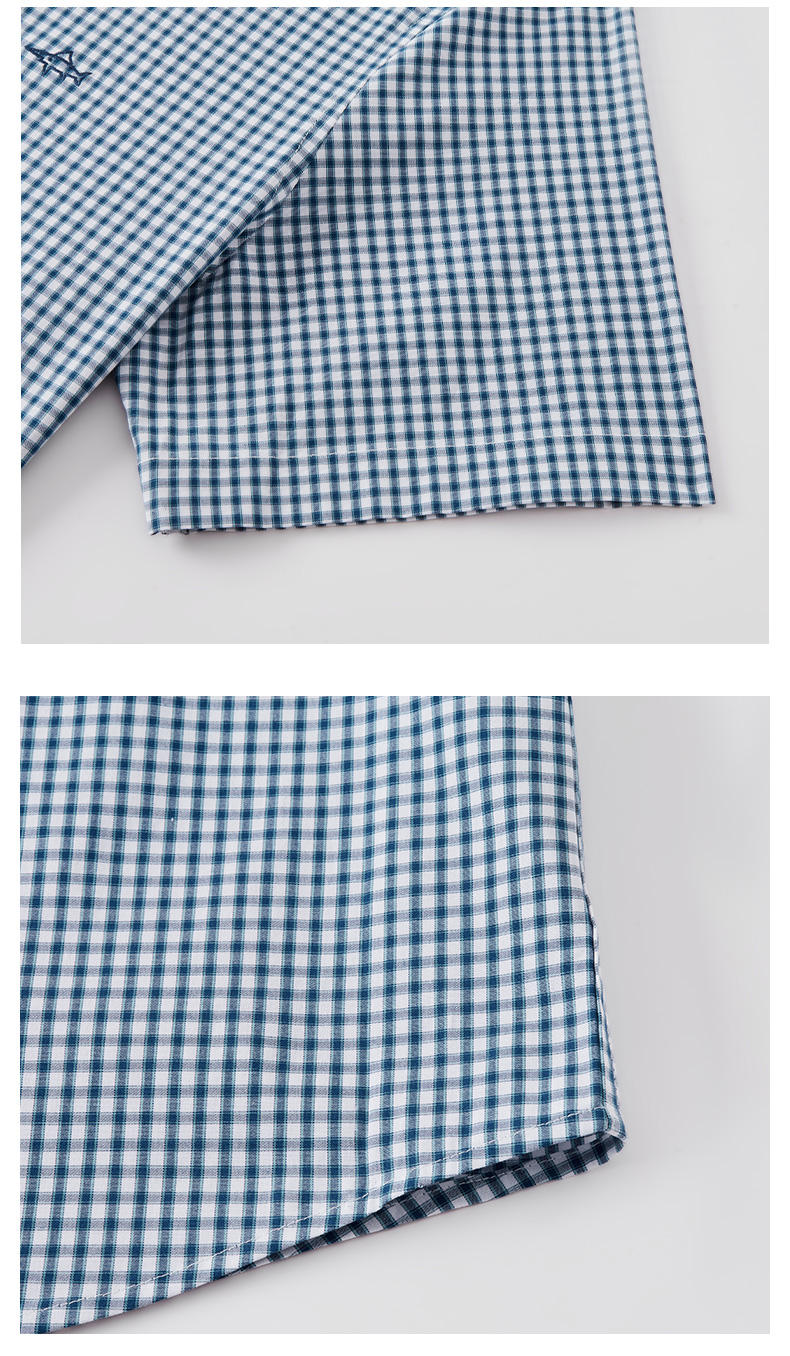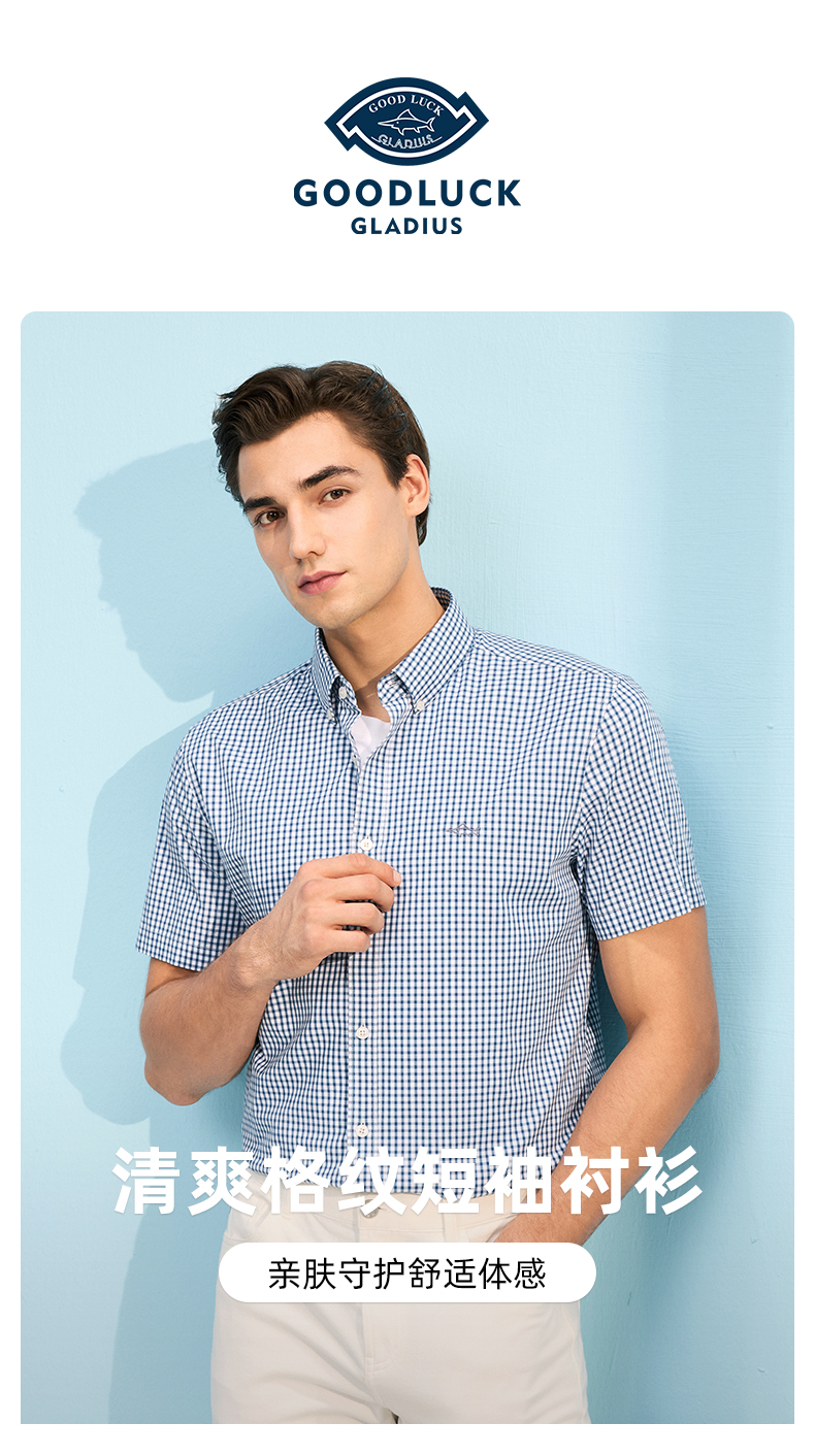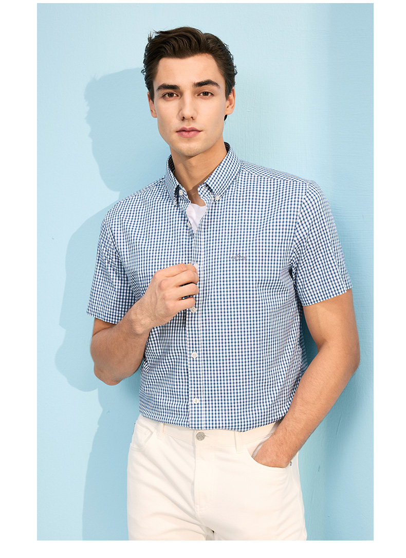 德鲨鲨鱼短袖棉质衬衫男青年经典格纹上衣打底弹力衬衣2026夏新款