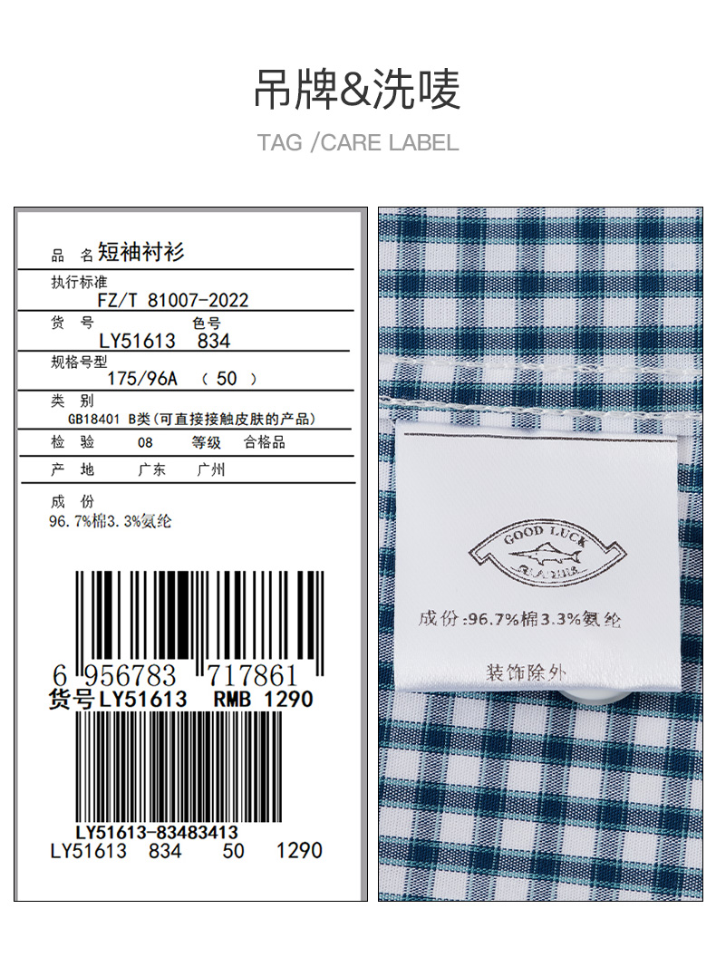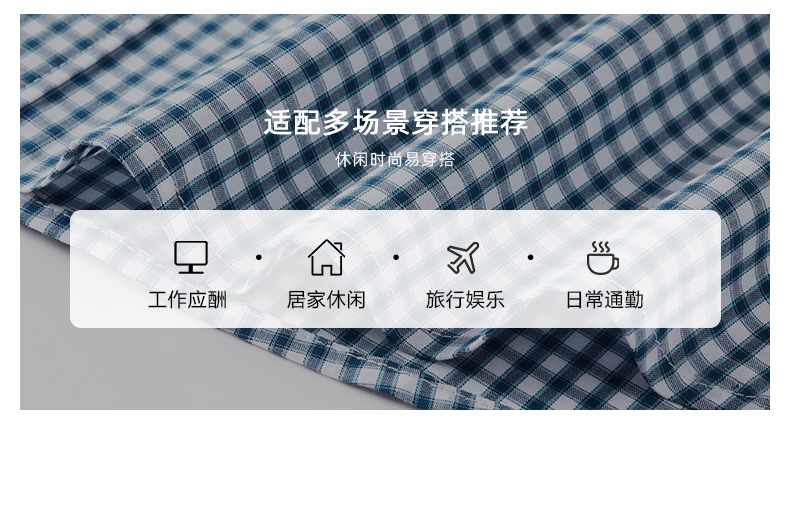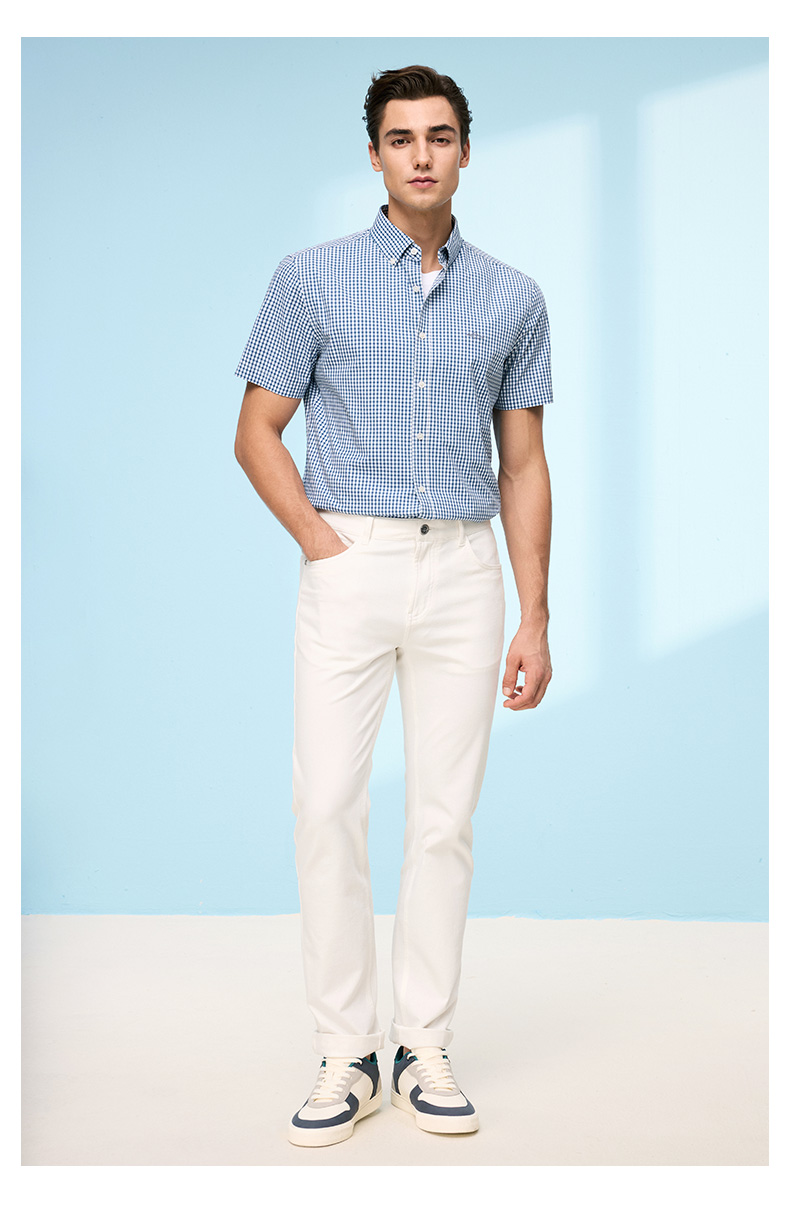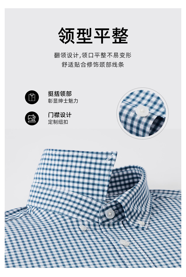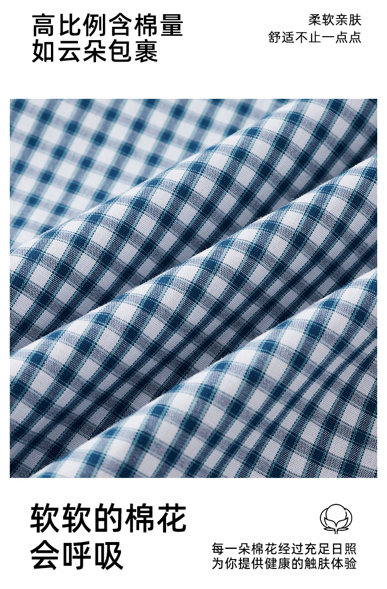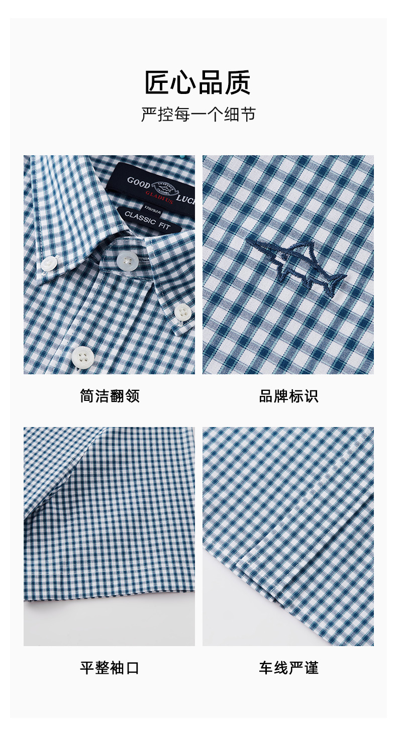 德鲨鲨鱼短袖棉质衬衫男青年经典格纹上衣打底弹力衬衣2026夏新款