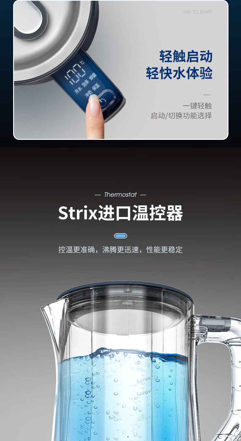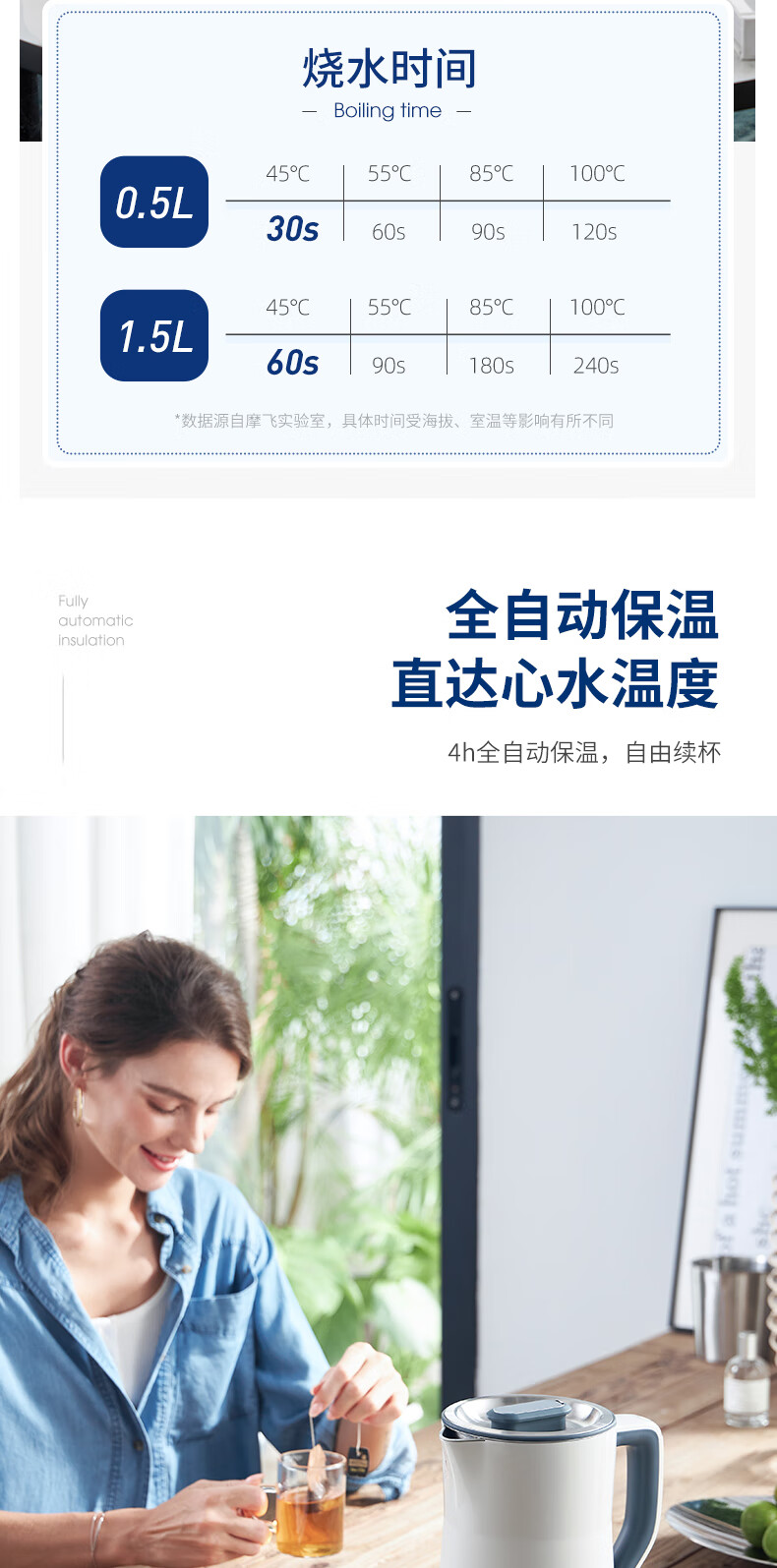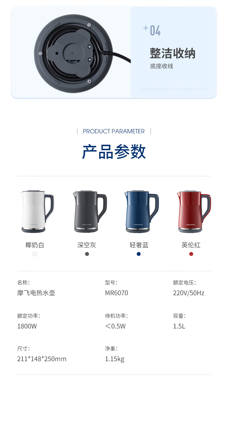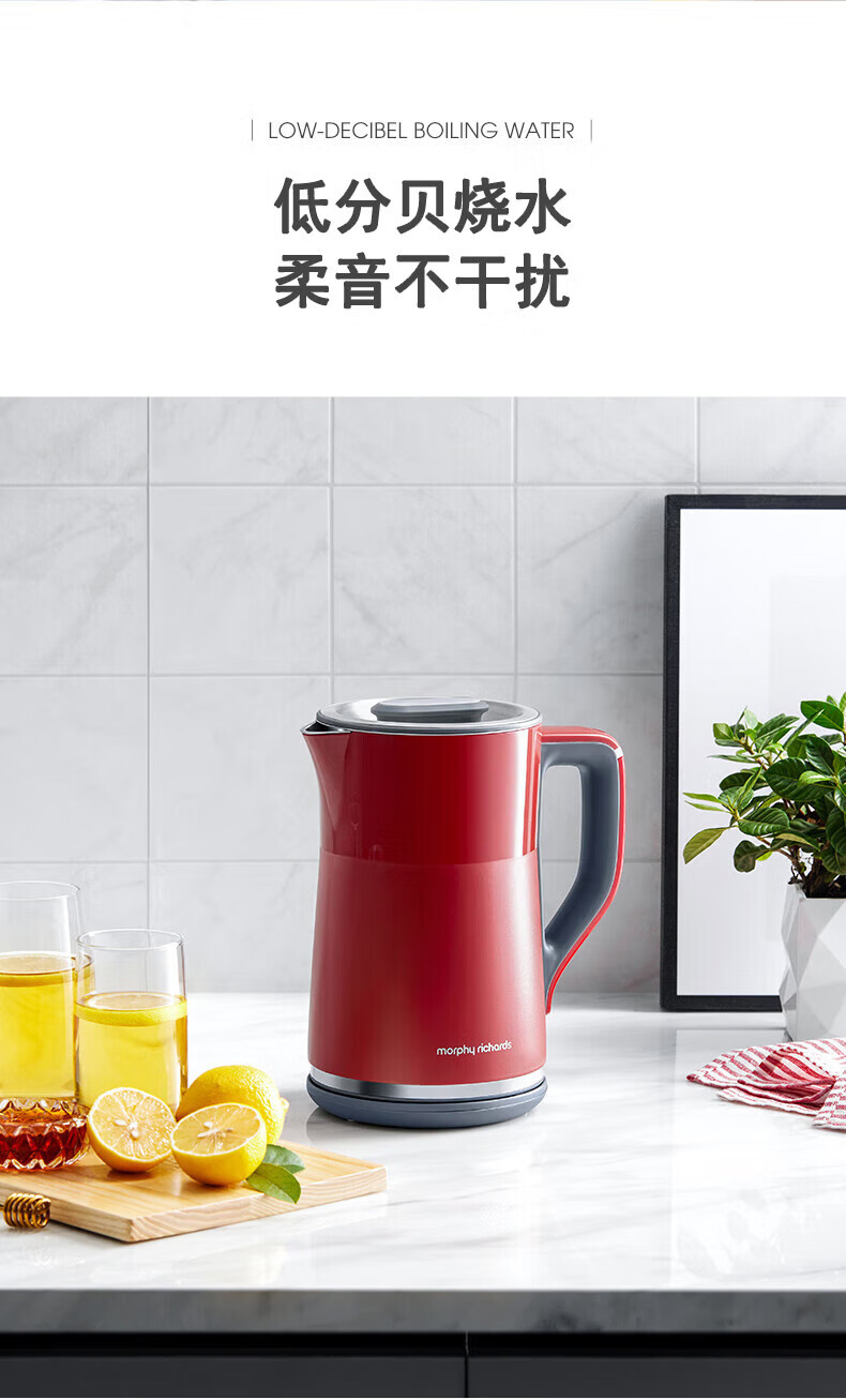 摩飞电器(Morphyrichards)电热水壶 烧水壶 热水壶 家用恒温水壶 1.5L全不锈钢304双层防烫实时显温开水壶 MR6070 灰