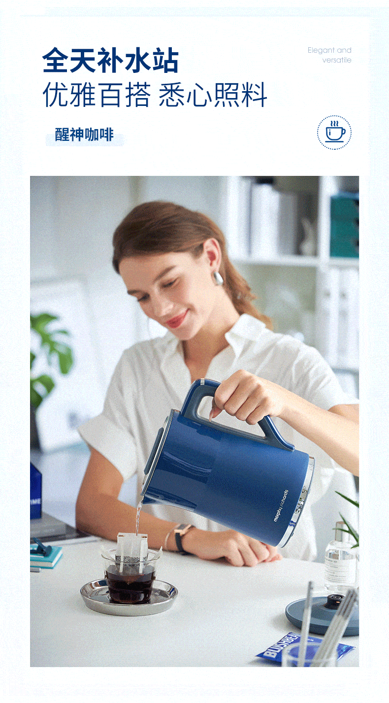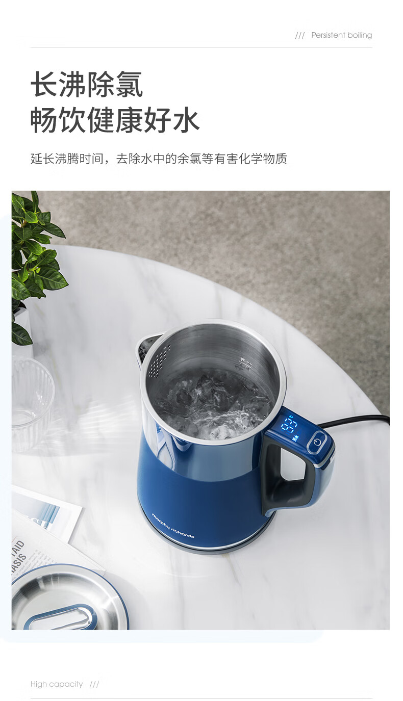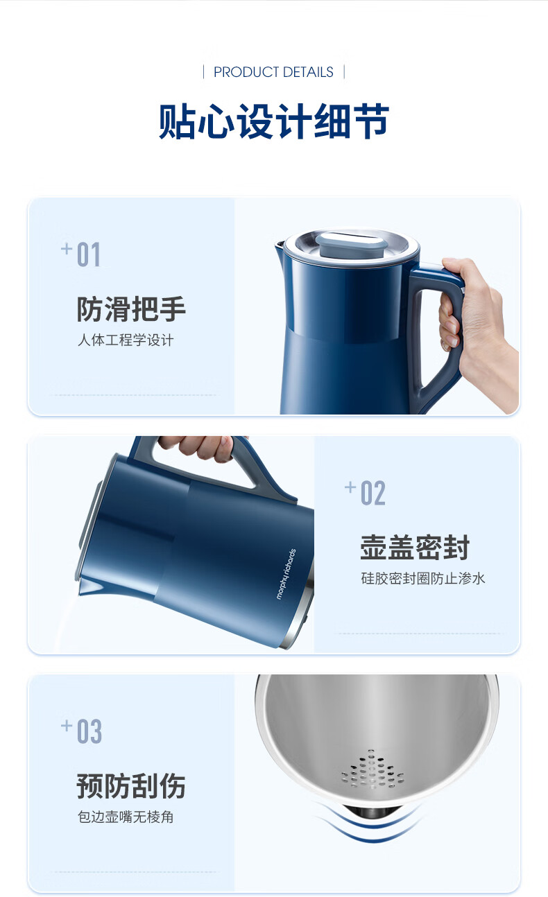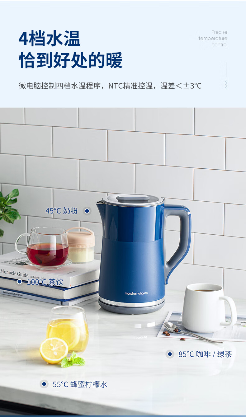 摩飞电器(Morphyrichards)电热水壶 烧水壶 热水壶 家用恒温水壶 1.5L全不锈钢304双层防烫实时显温开水壶 MR6070 灰
