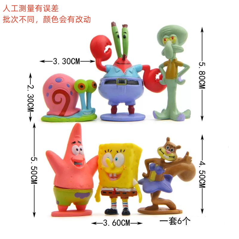 装饰摆件套装 海绵宝宝摆件6入 海绵宝宝派大星小蜗蟹老板章鱼哥装饰摆件