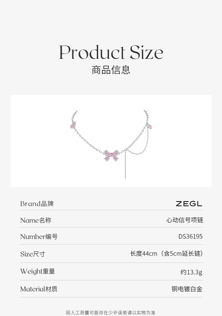 ZEGL设计师幻蝶心语系列蝴蝶结流苏项链女生小众设计高级感锁骨链