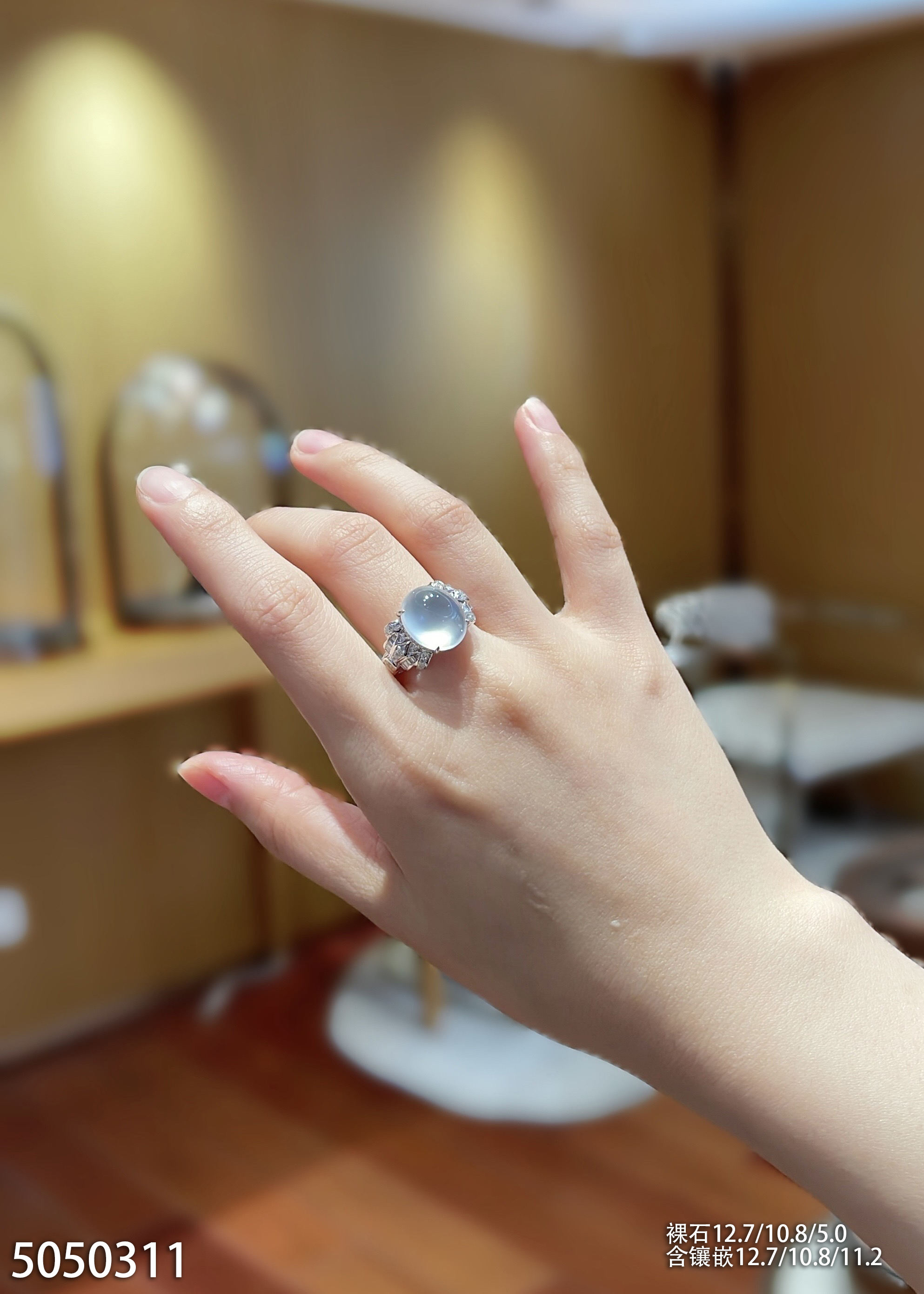 132-2123701,老坑高冰艳绿蛋面戒指,6599