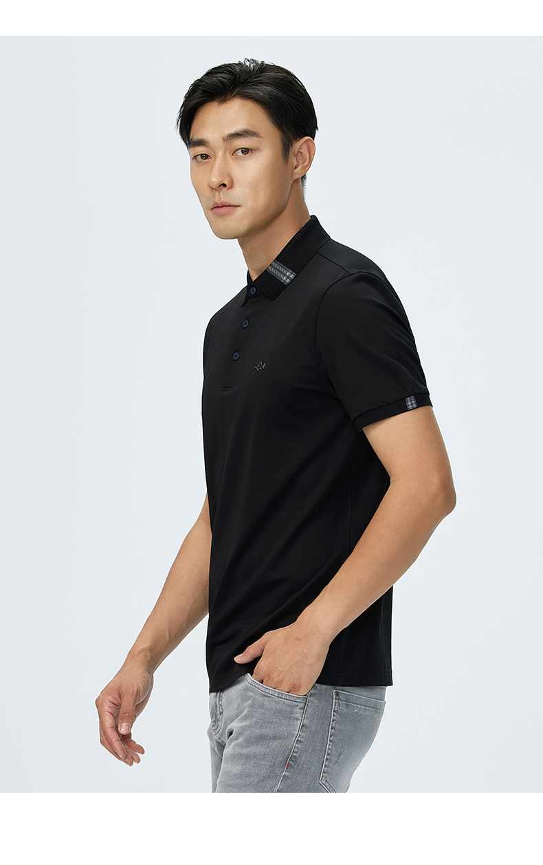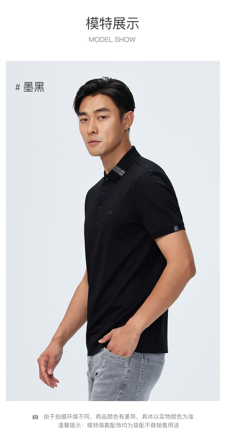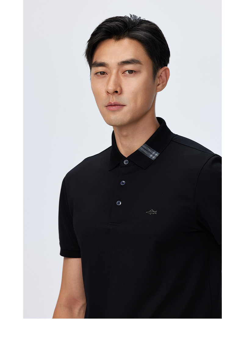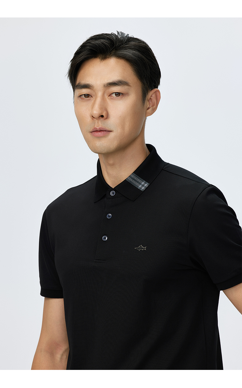 德鲨夏新款黑色休闲短袖POLO衫男时尚简约棉质翻领上衣T恤