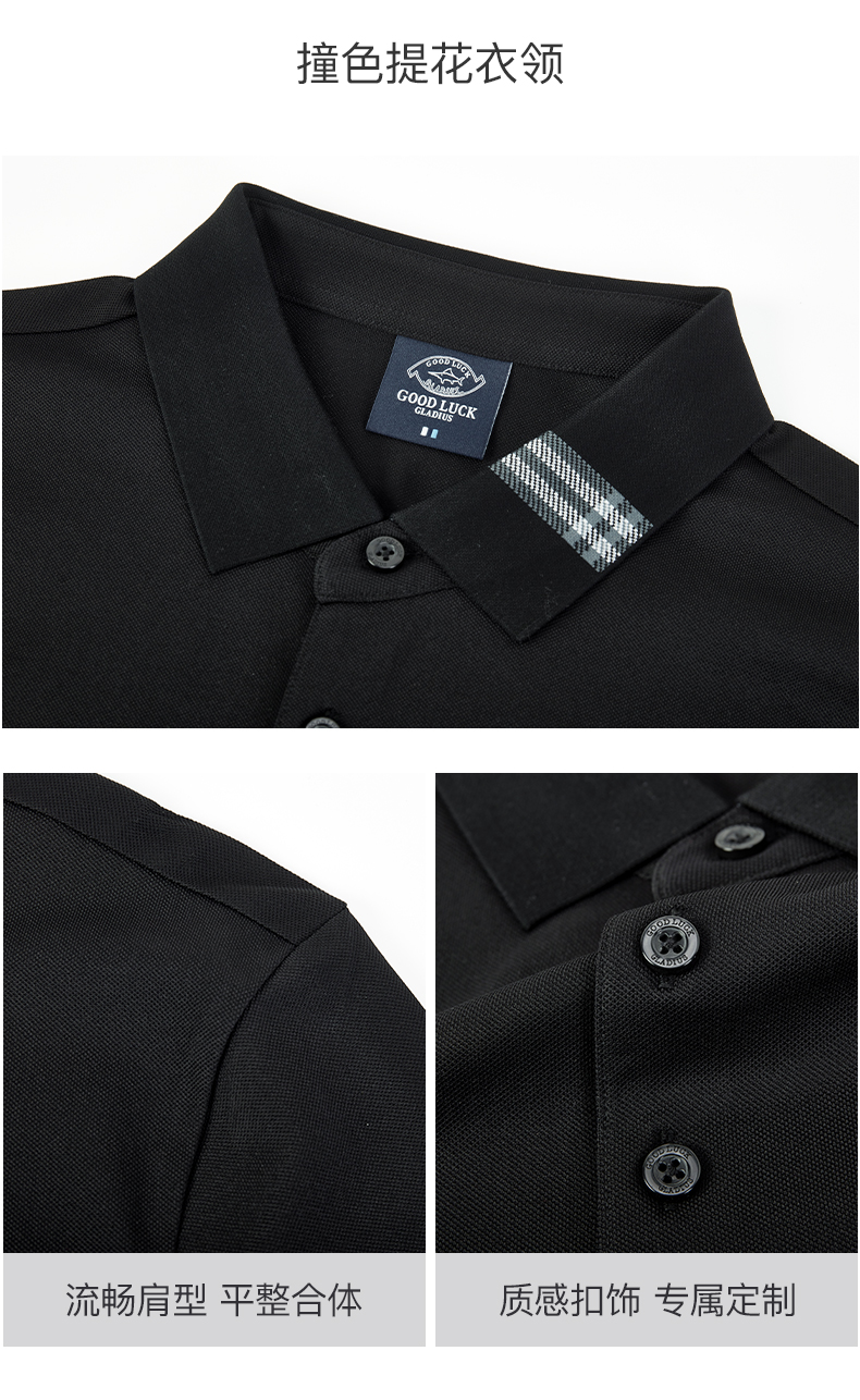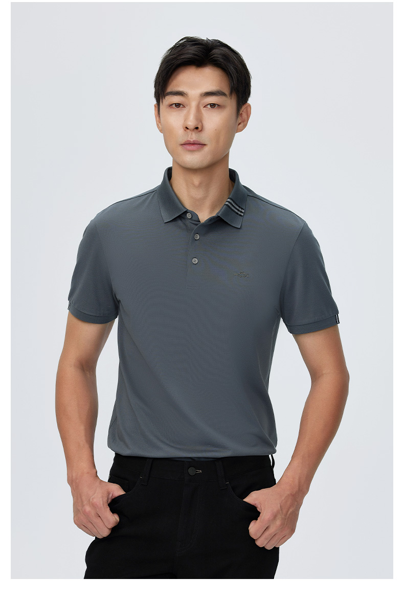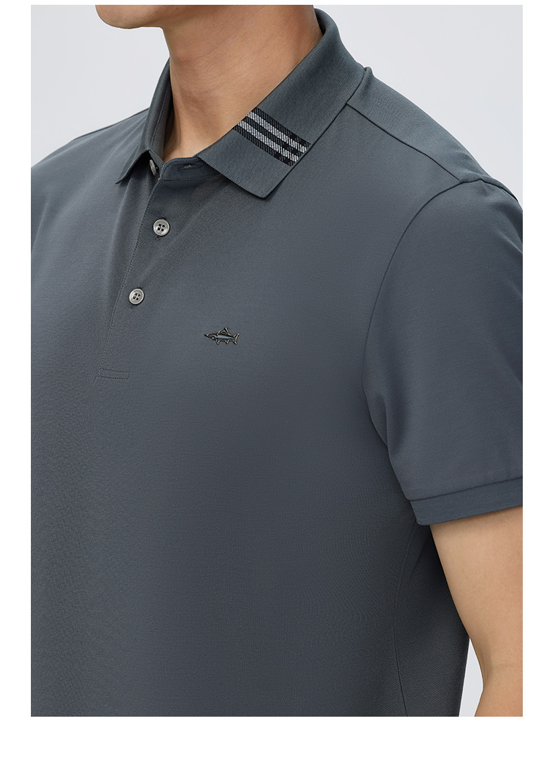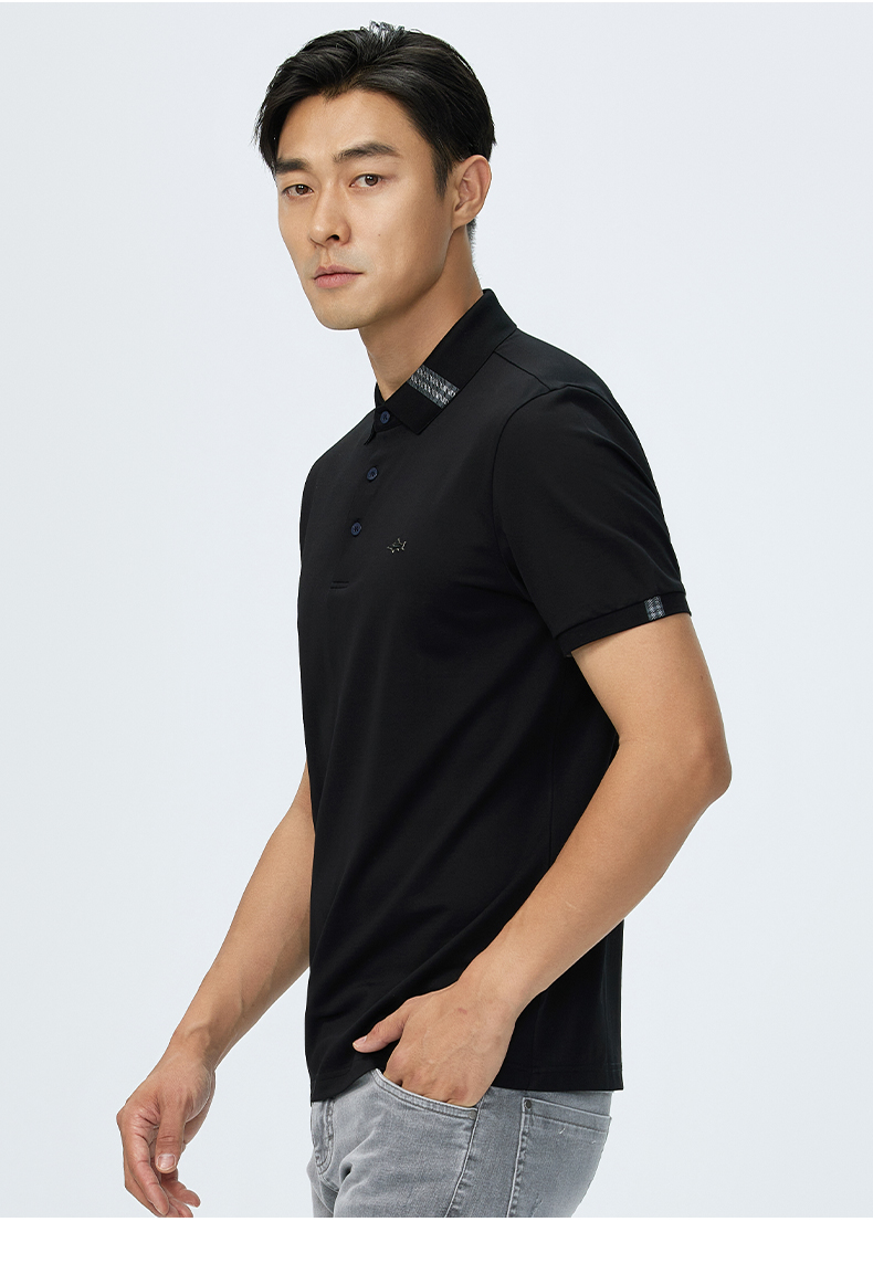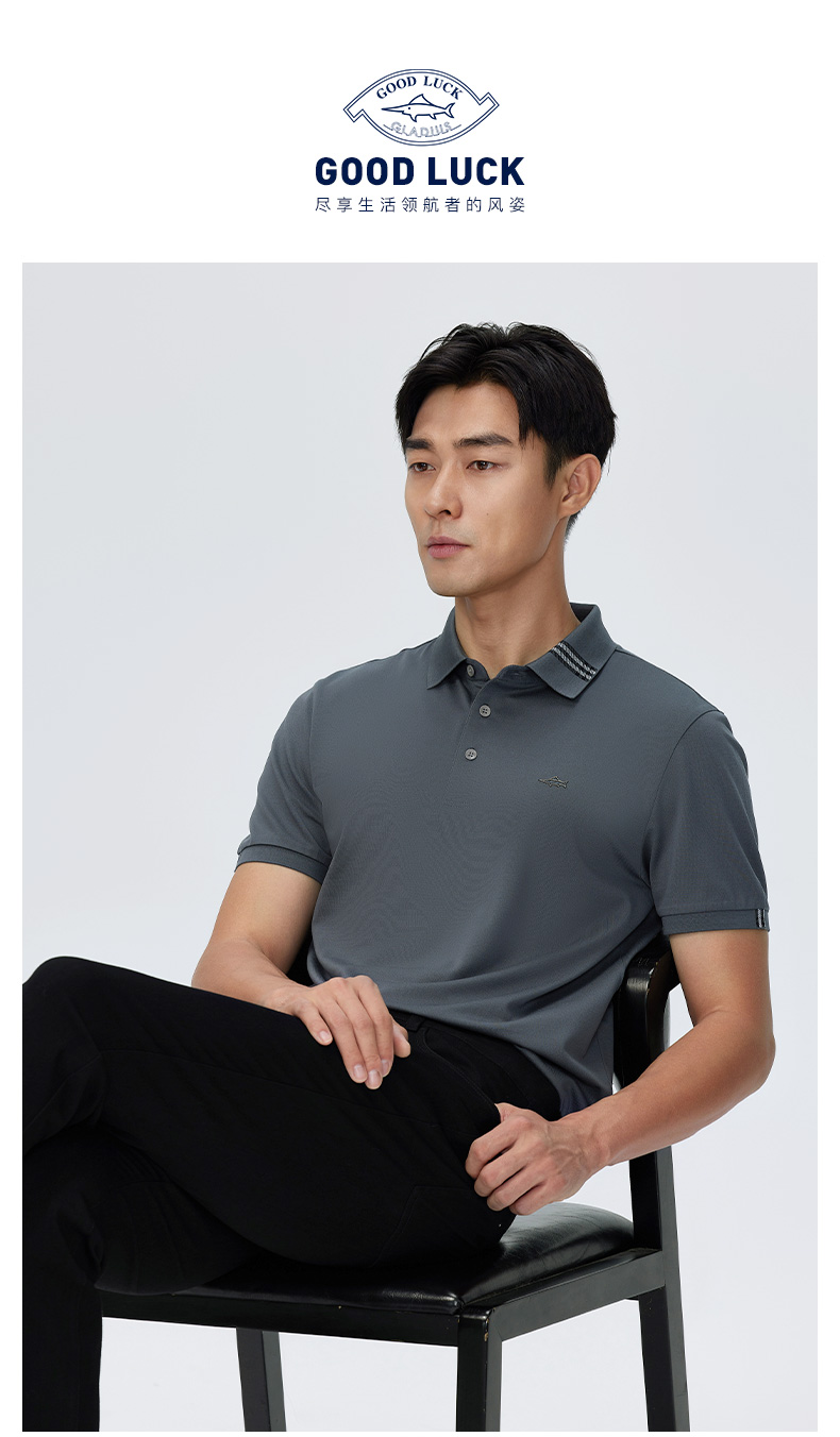 德鲨夏新款黑色休闲短袖POLO衫男时尚简约棉质翻领上衣T恤