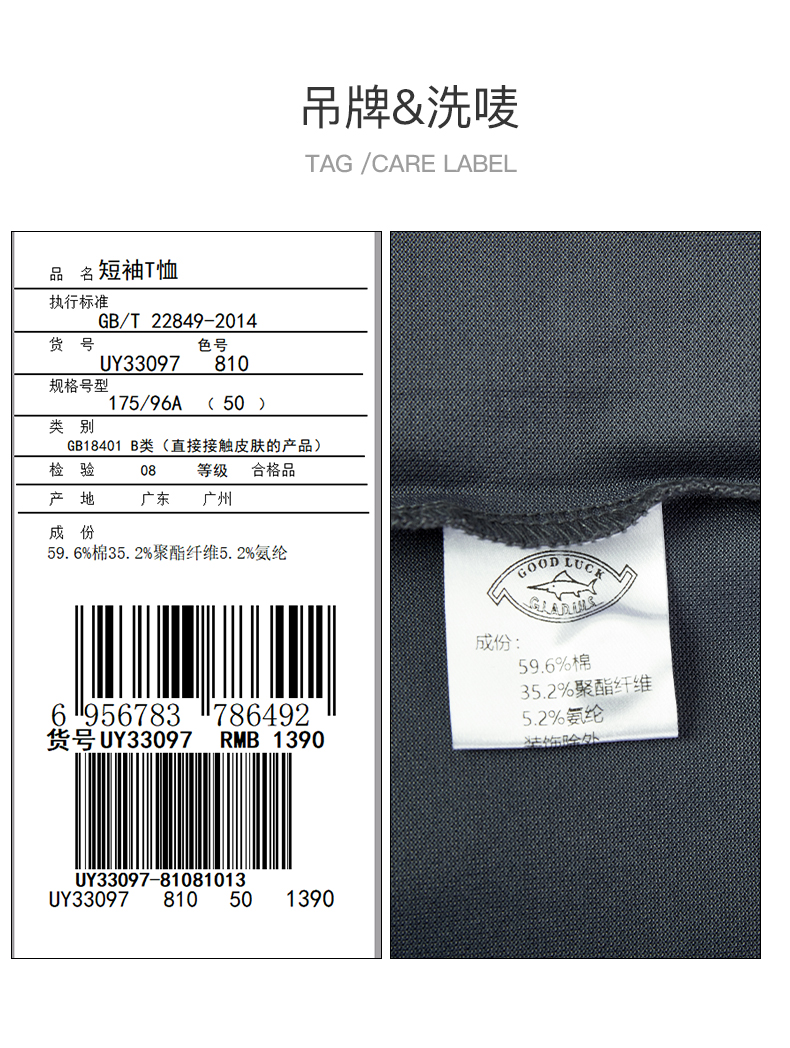 GOOD LUCK/德鲨高弹透气轻薄舒适直筒休闲裤FY27457-810
