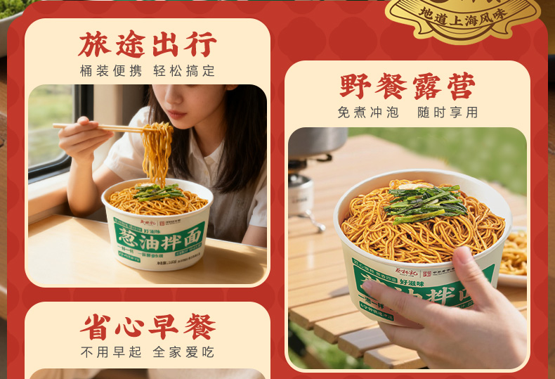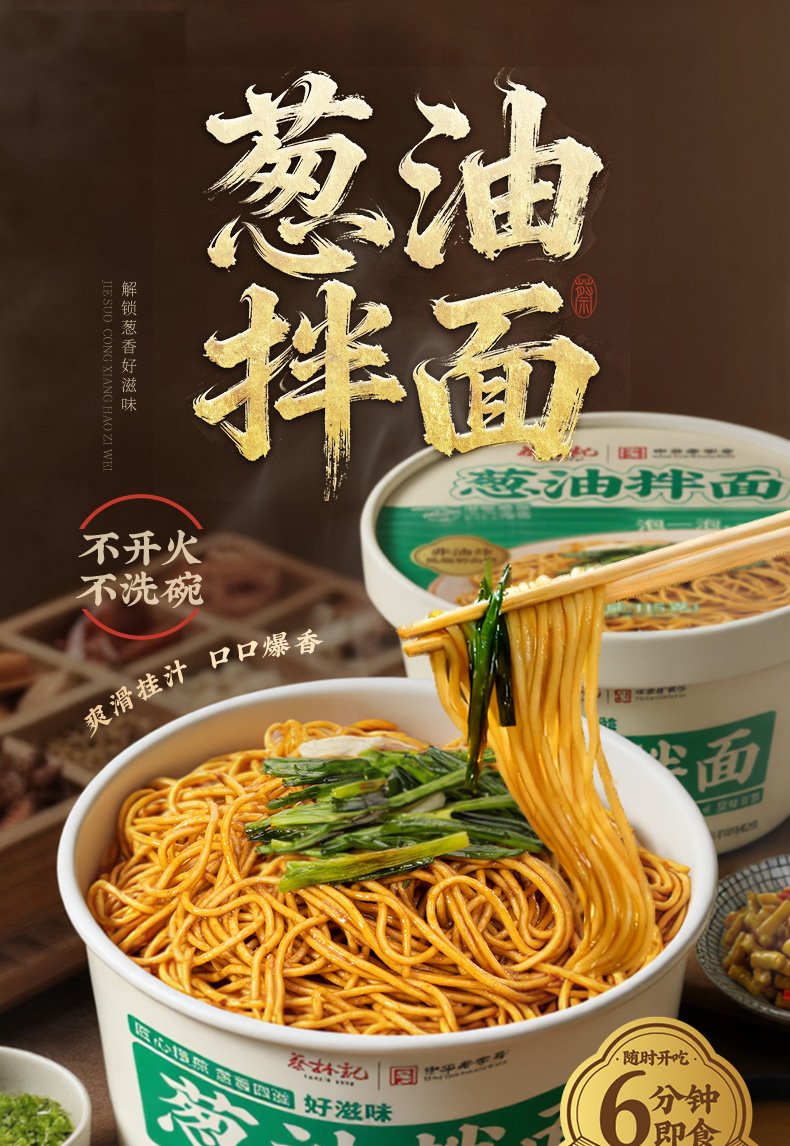 蔡林记葱油拌面冲泡型115g*2盒湖北特产非油炸方便面宿舍囤货速食泡面 湖北直发