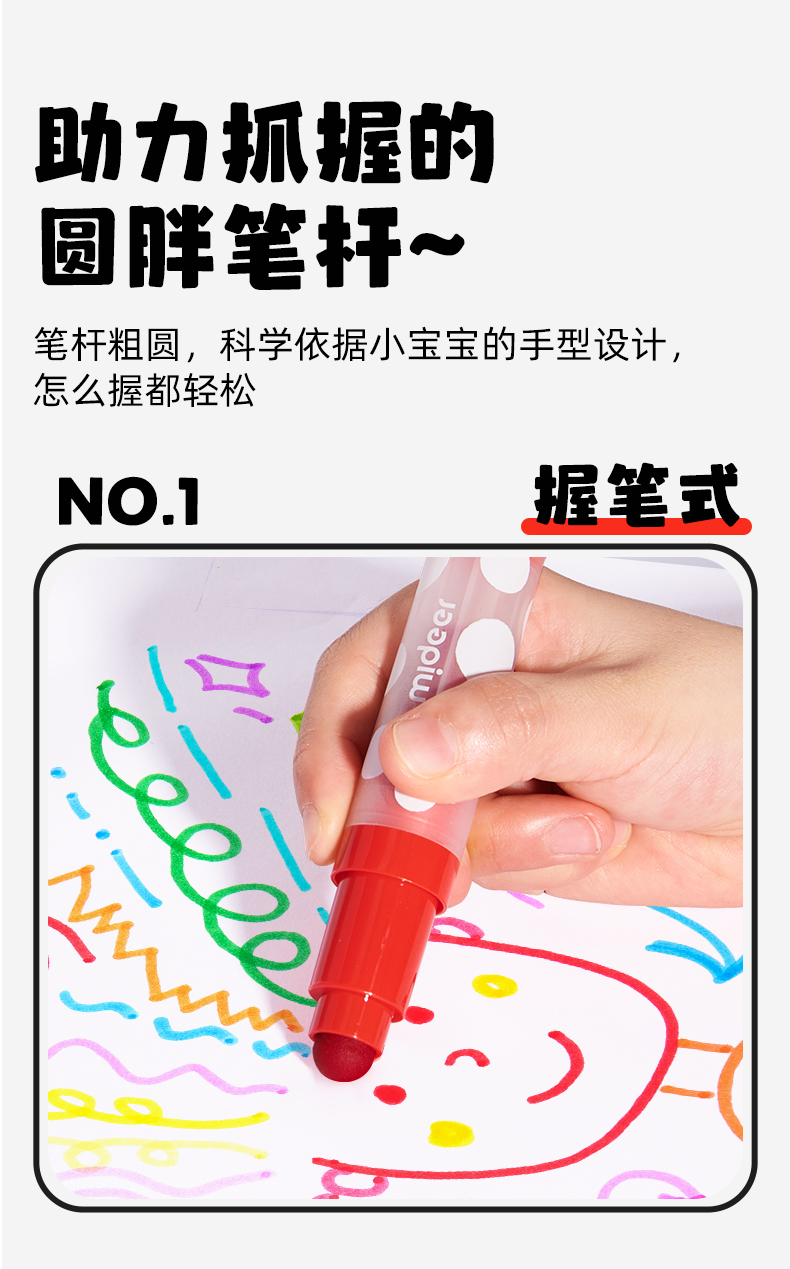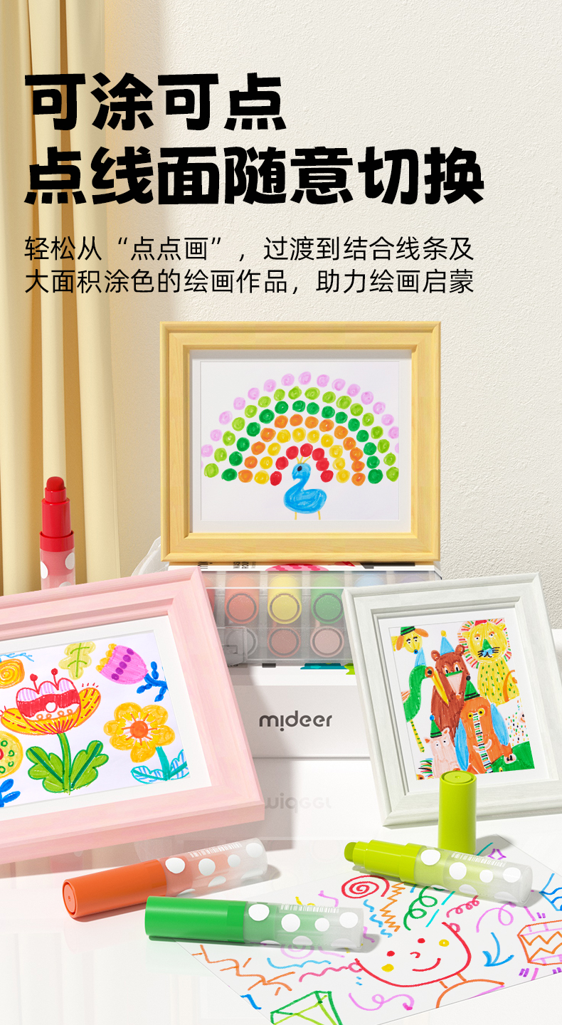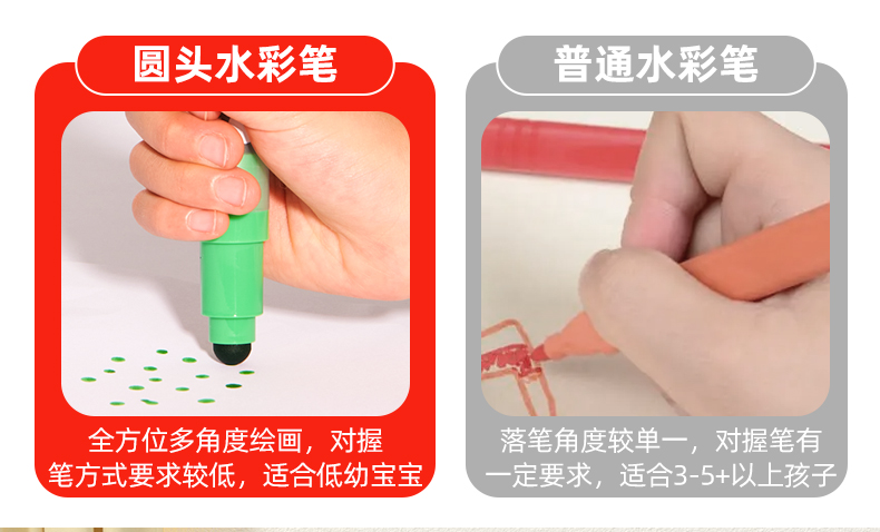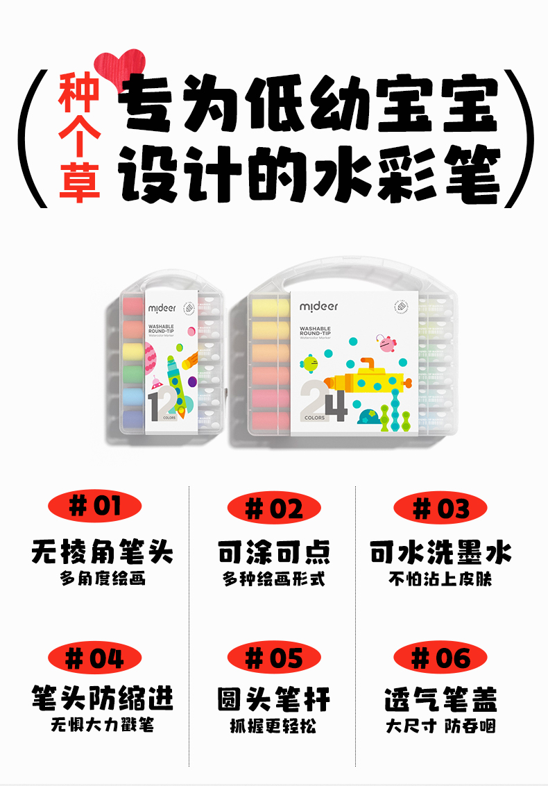 mideer弥鹿儿童圆头水彩笔可水洗幼儿园画笔套装水溶性12色宝宝绘画启蒙笔小学生涂鸦彩色笔24色画画笔涂色笔