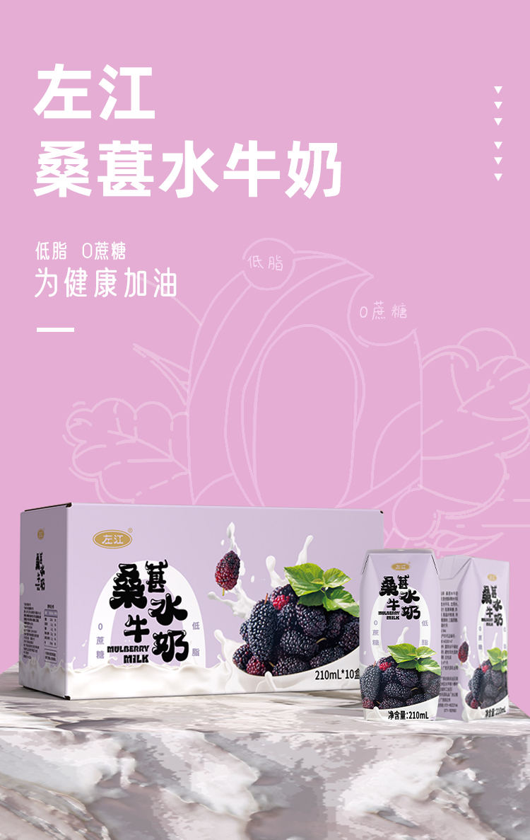 【低脂0蔗糖】左江桑葚水牛奶210ml*10盒 果味清新营养早餐奶整箱