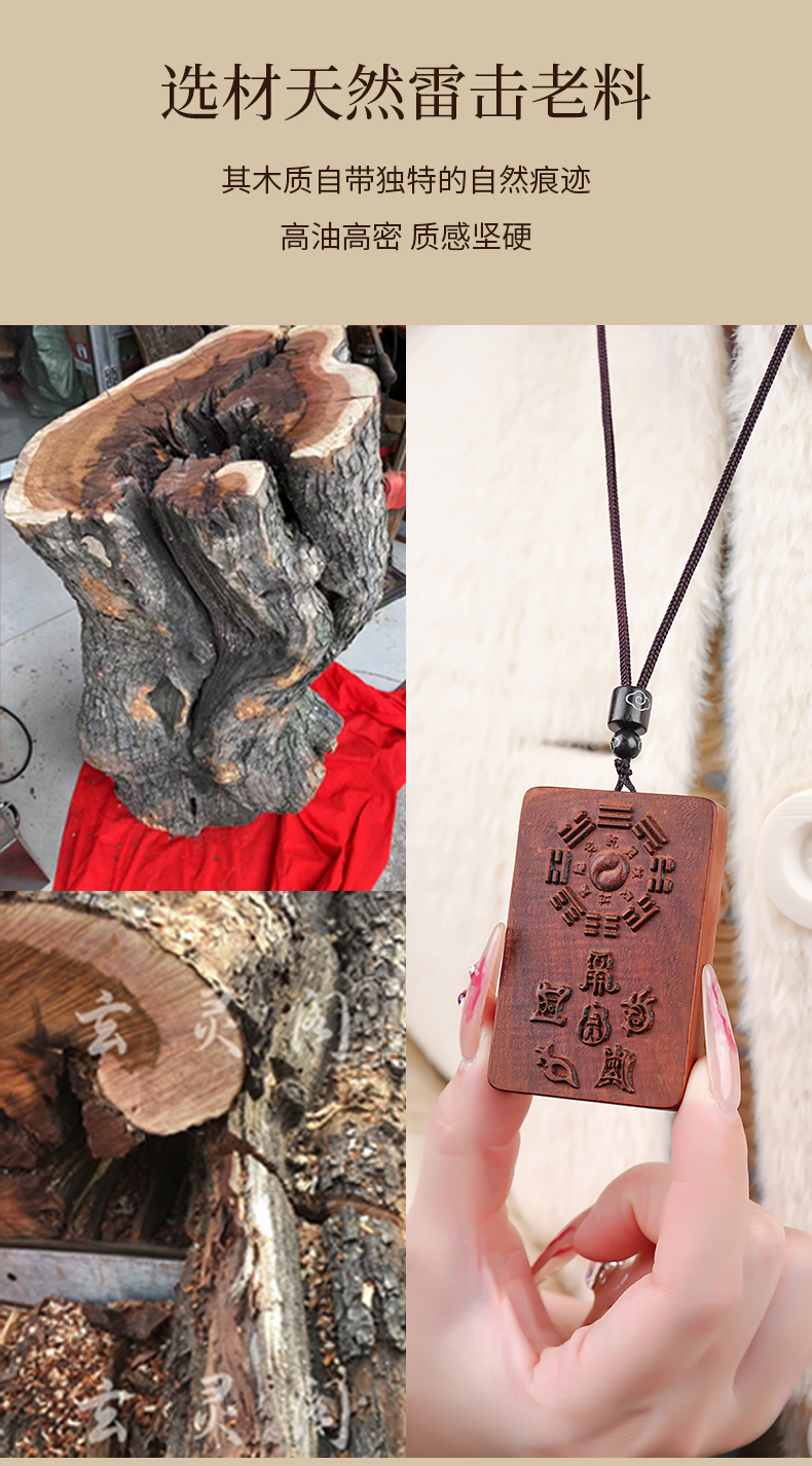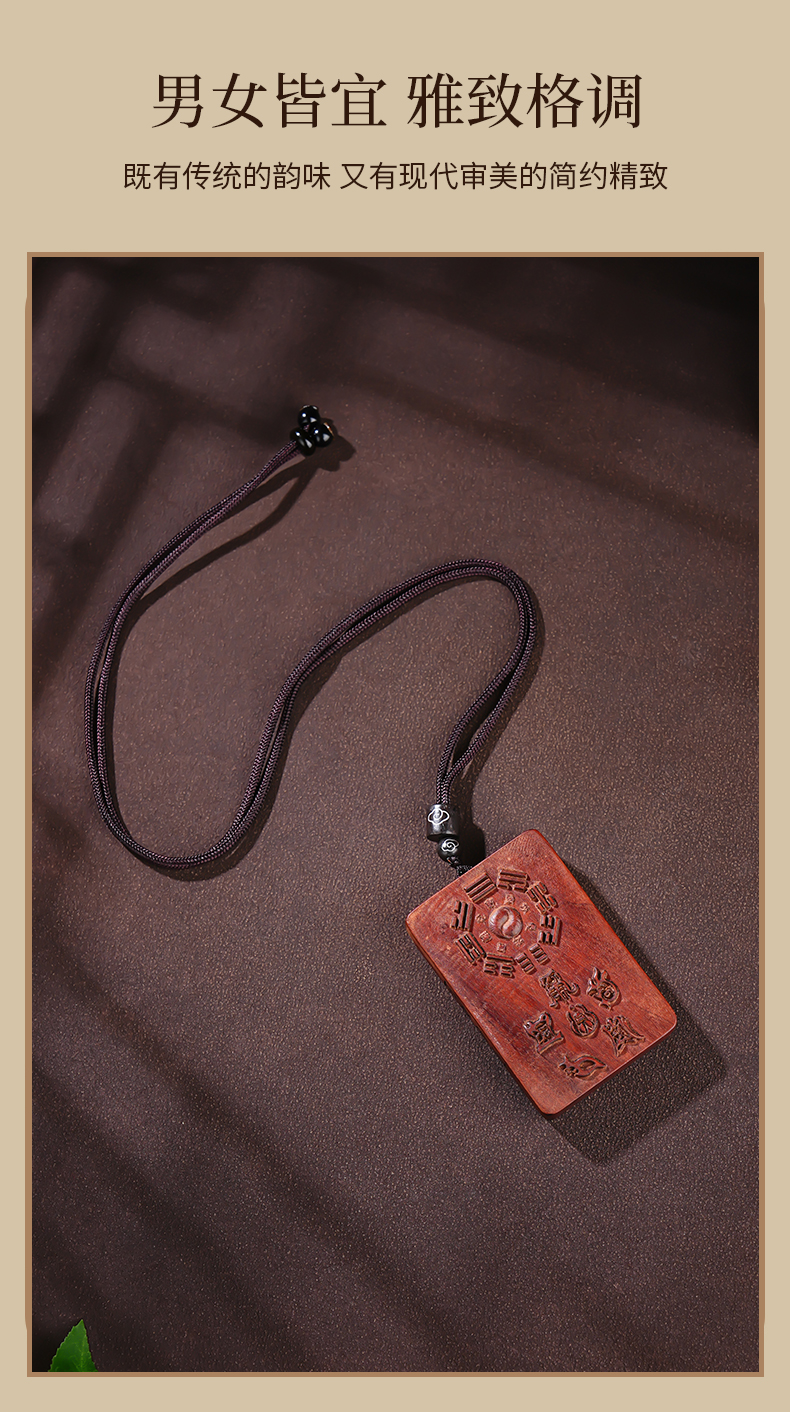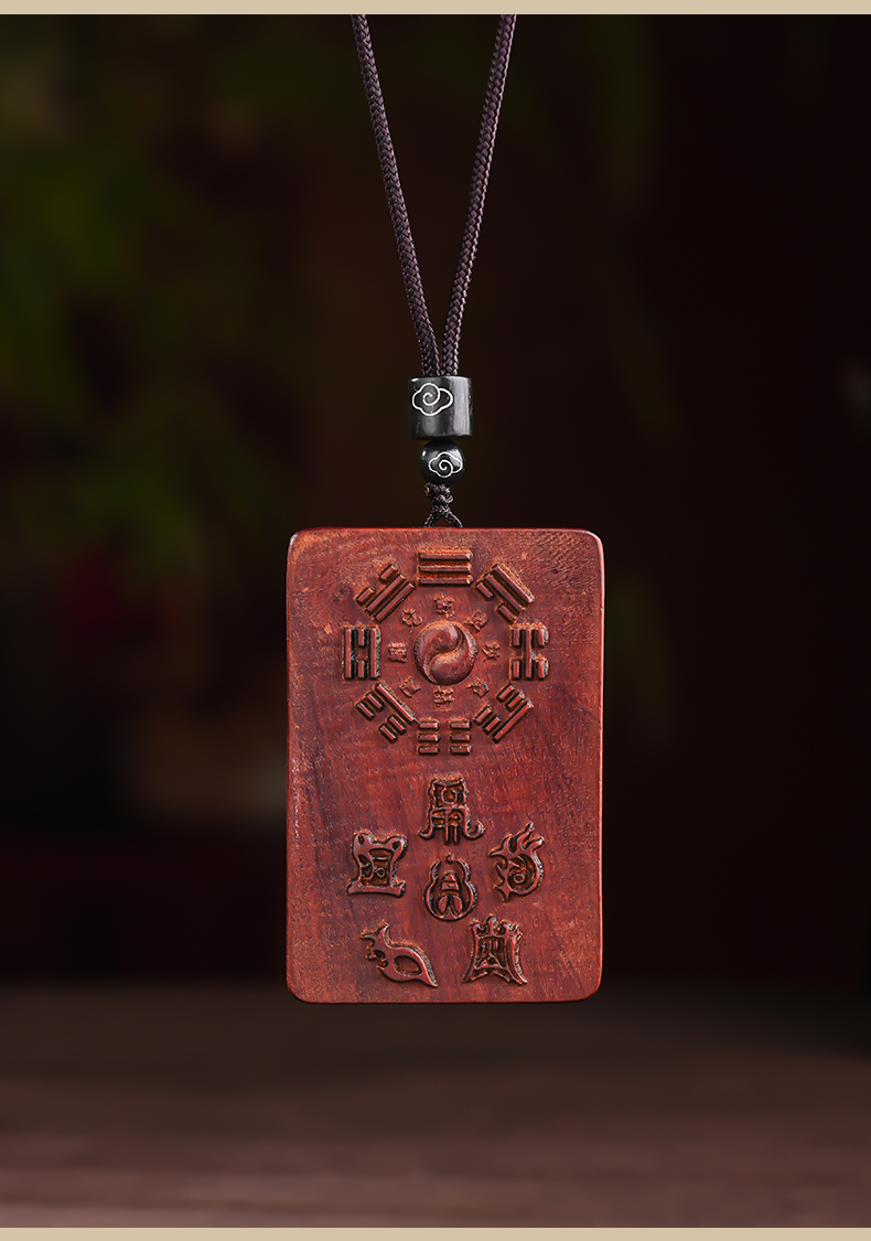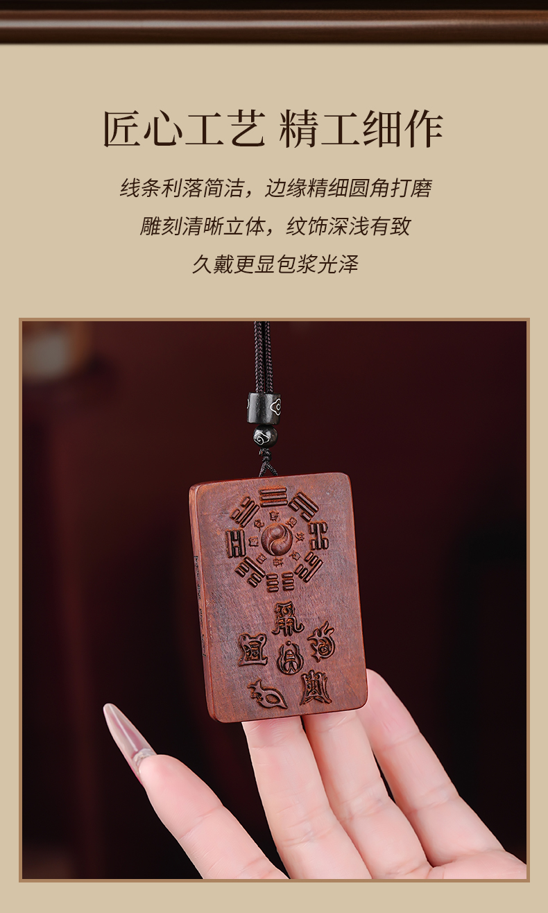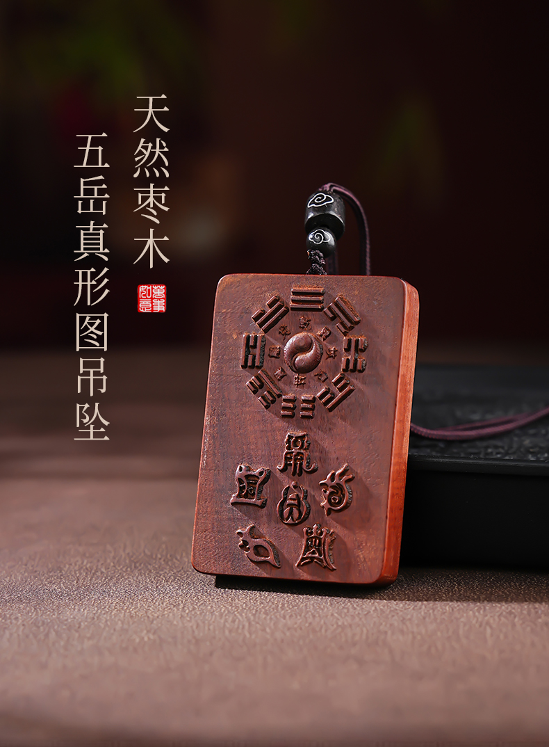 国风雷击枣木五岳真形勒令吊坠精工雕刻太极八gua随身挂饰