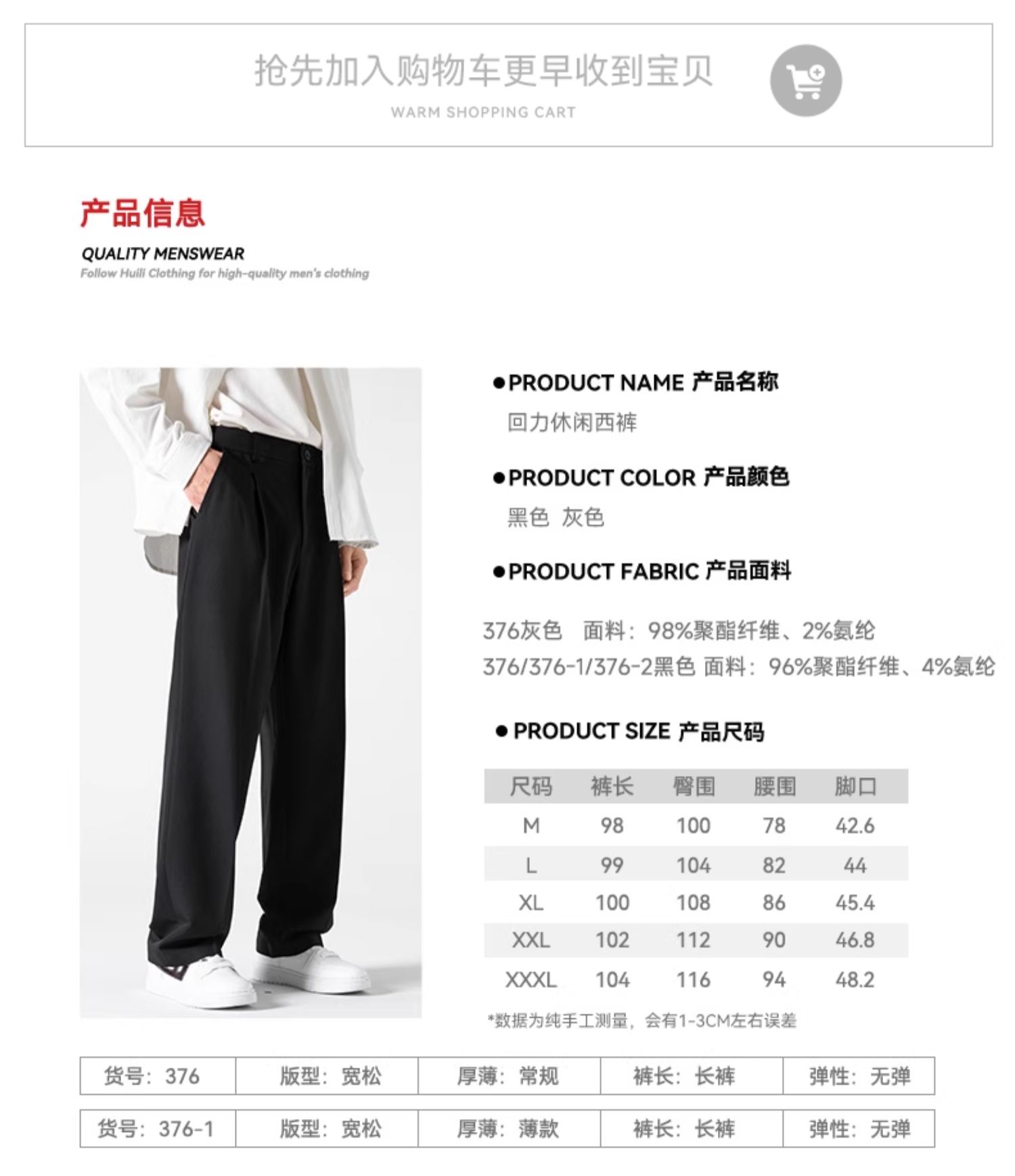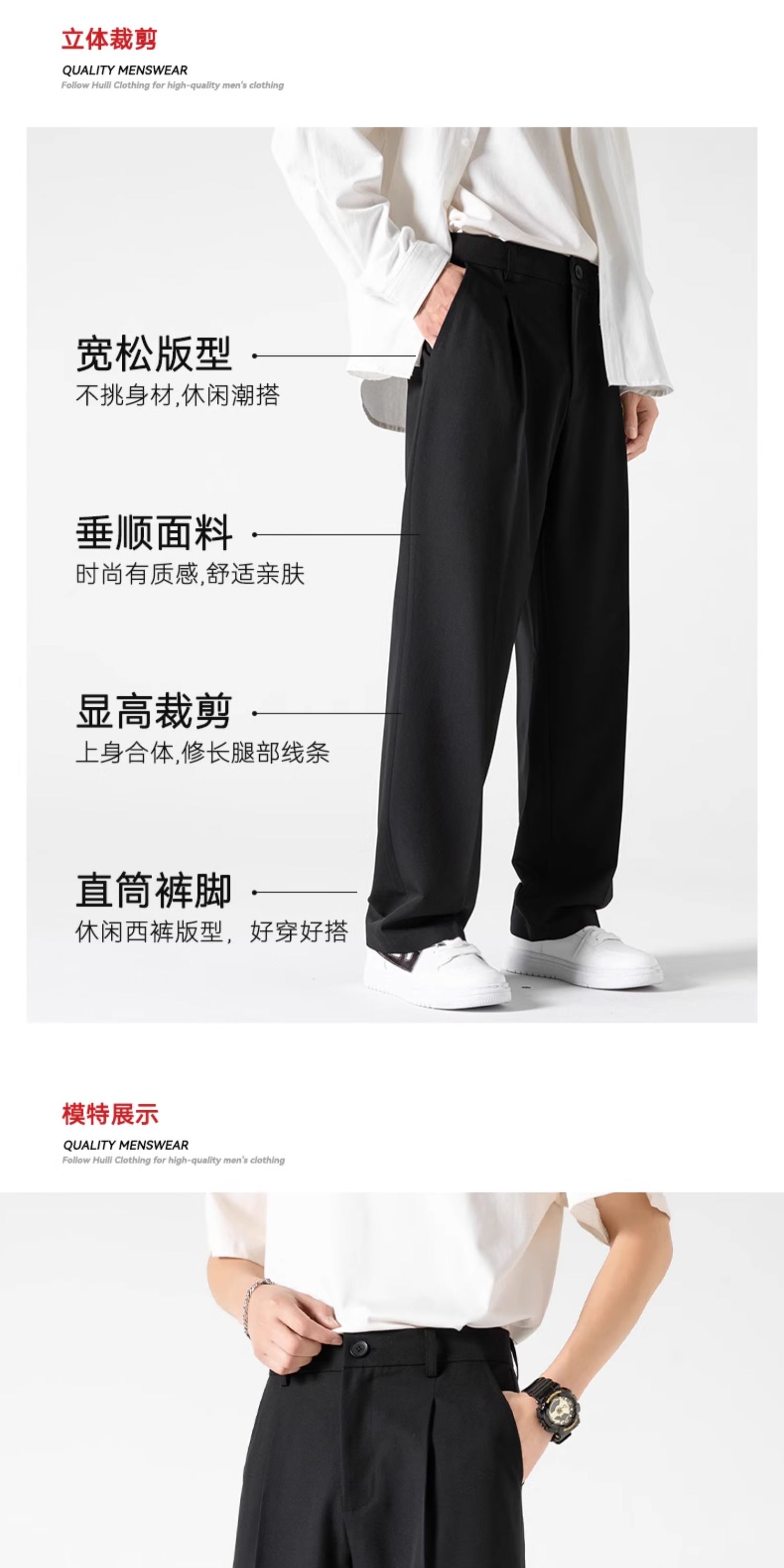 回力西裤男正装直筒a字西装裤垂坠感高级感cleanfit高腰男士裤子