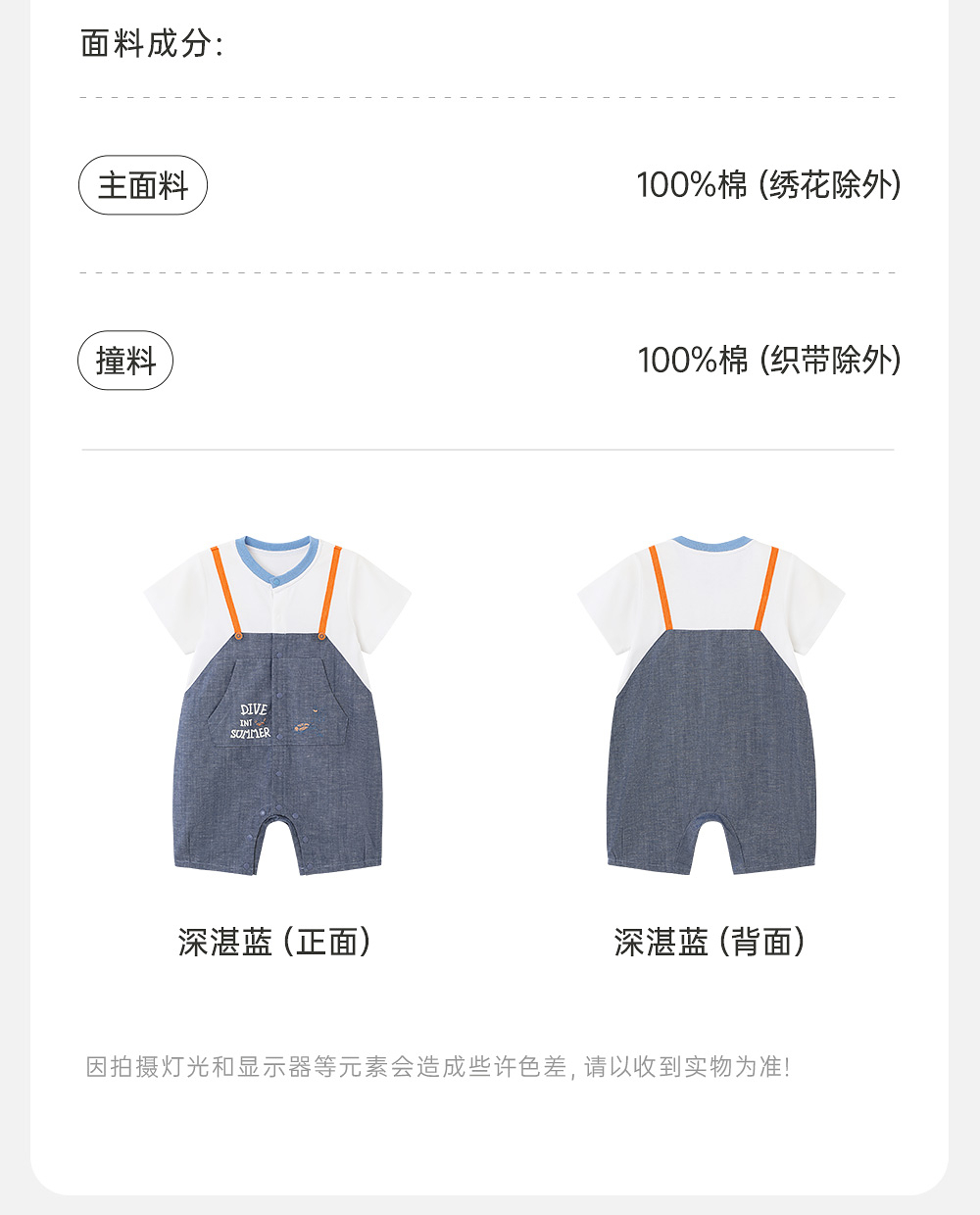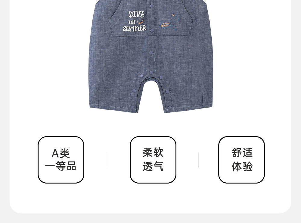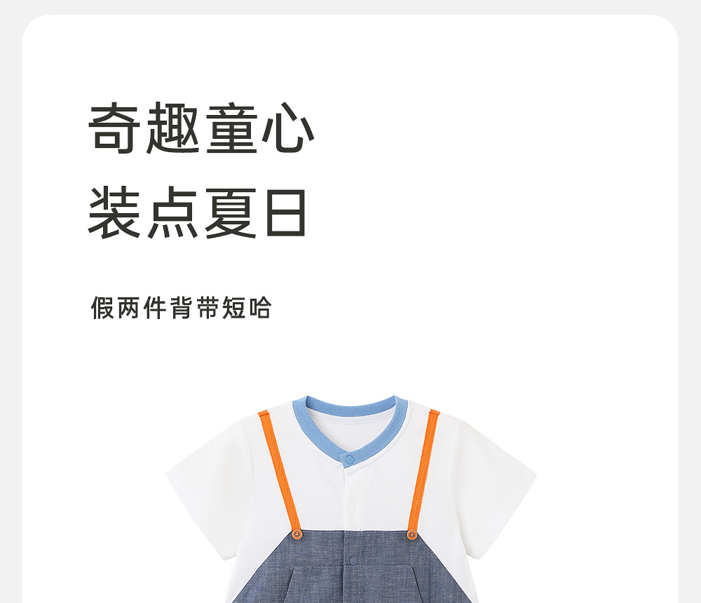 英氏婴儿衣服夏季短袖男童透气纯棉假两件连身衣爬服YRHBJ2R032A