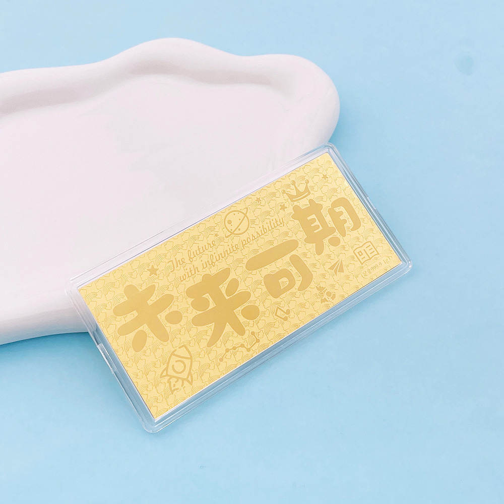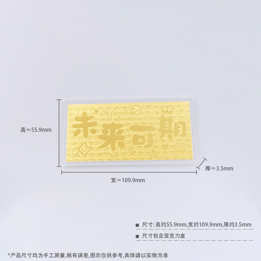 【限时克减128元】【1克】足金999.9 #未来可期 1g实心工艺金条未来可期吉言金钞(配图片红包、亚克力盒)(ZJJC00153)(预售产品下单后不退款不退货不换货不补差价)