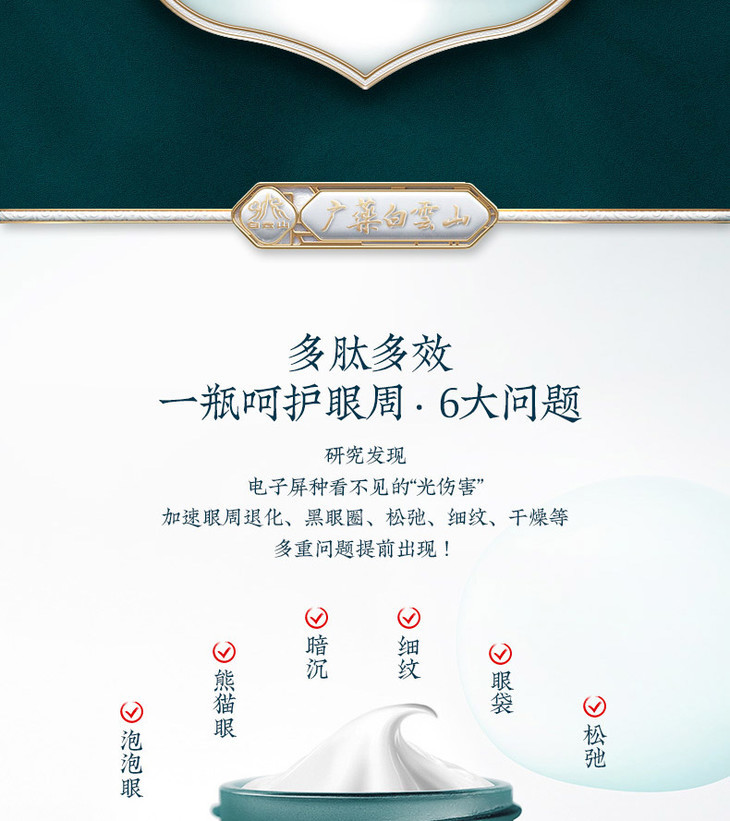 白云山多肽眼霜 多效呵护减少肌肤皱纹 提升弹性 多肽多效呵护眼周 祛除岁月痕迹
