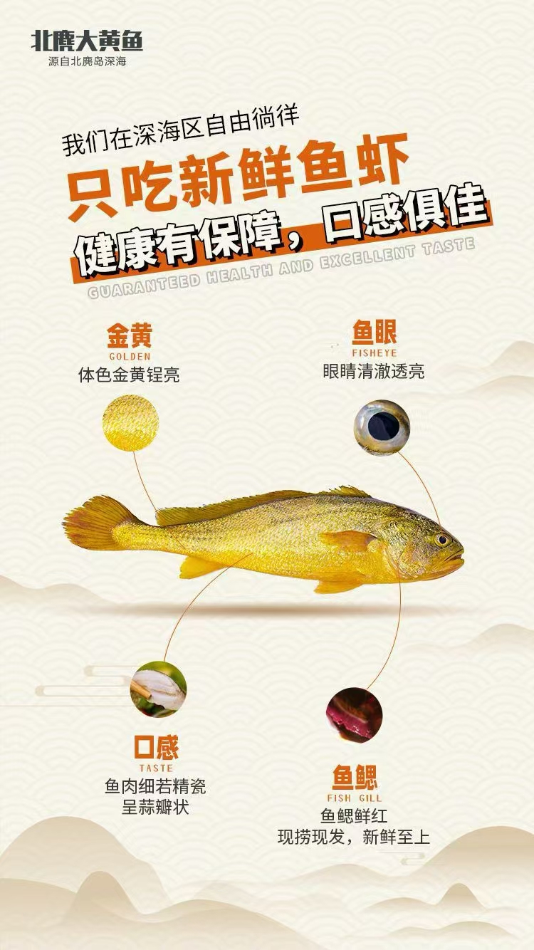 北麂岛深海大黄鱼,肉质鲜嫩,更接近野生黄鱼的口感。获得无数食客的好评,复购率很高。