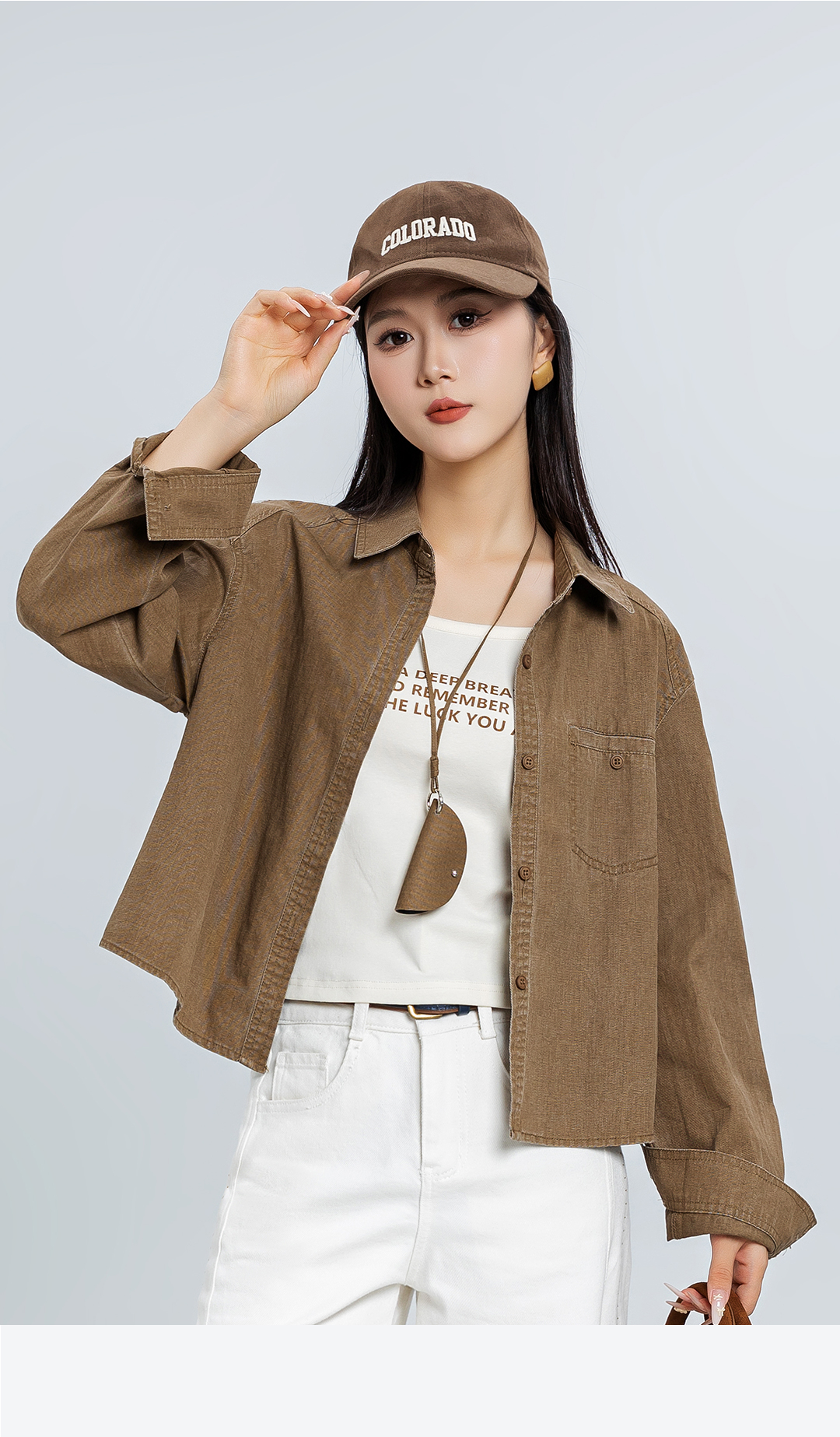 秋上新工装风卡其色衬衫 + 简约字母内搭时尚两件套1253074