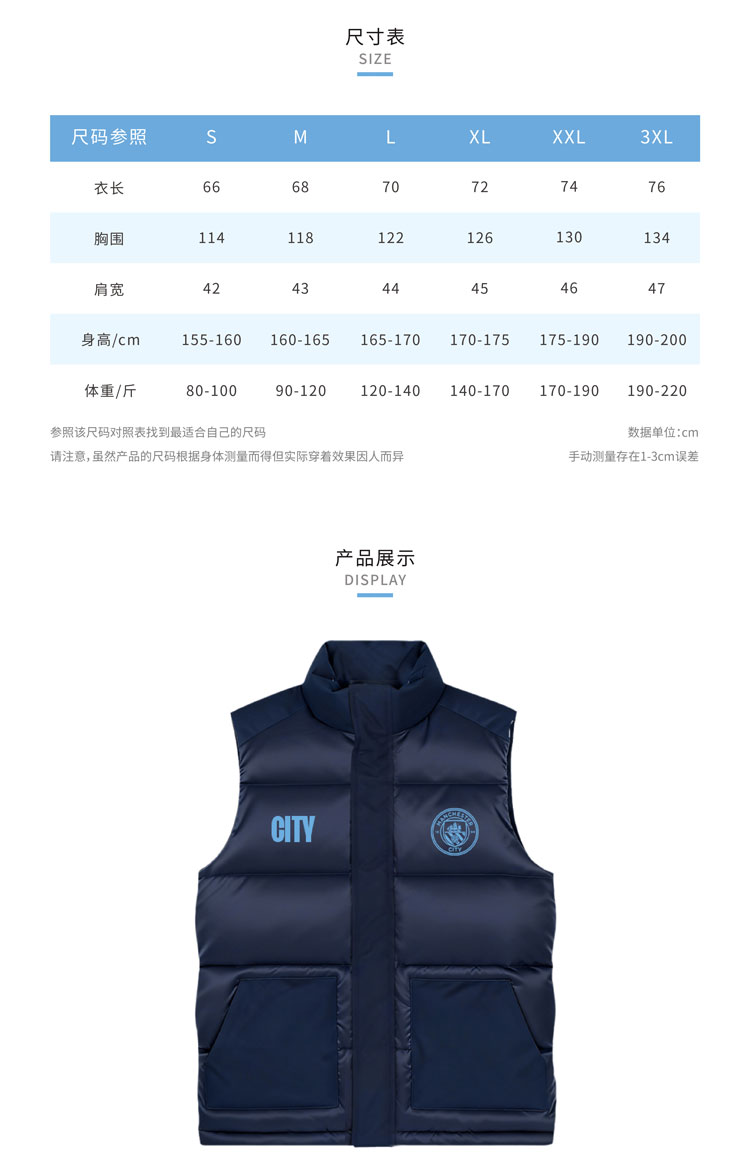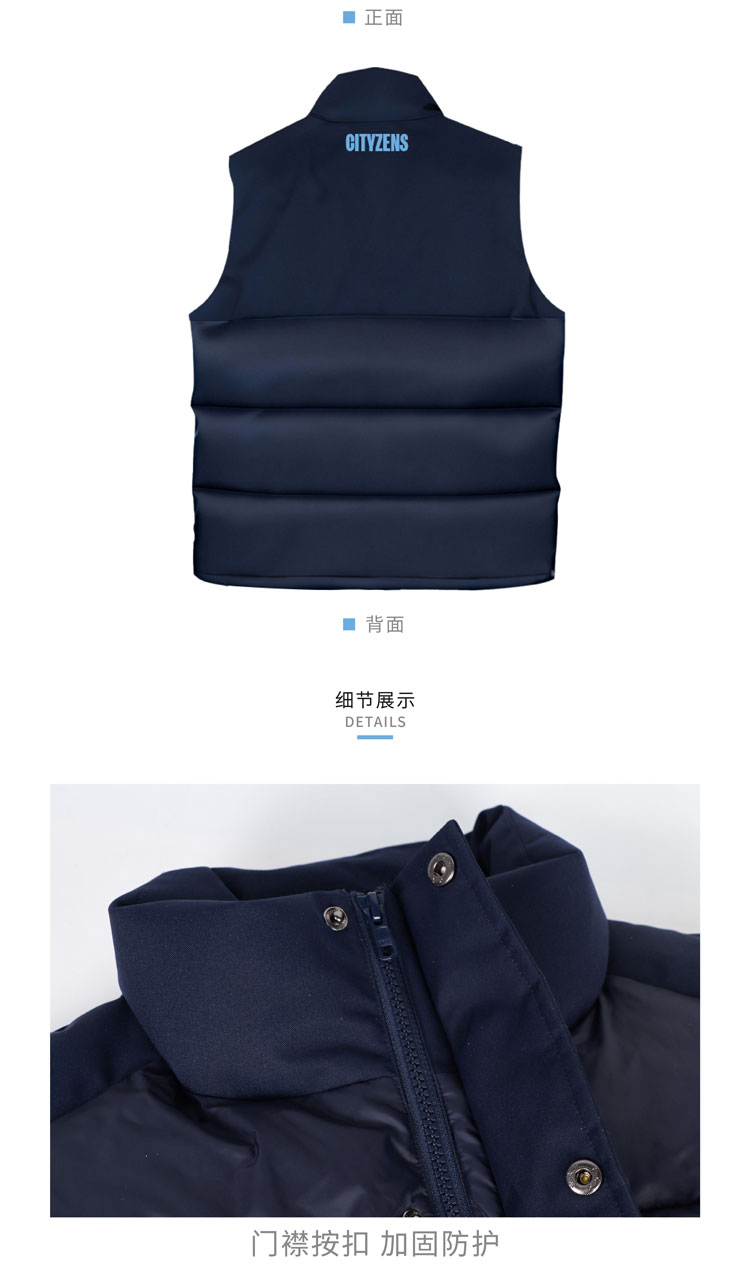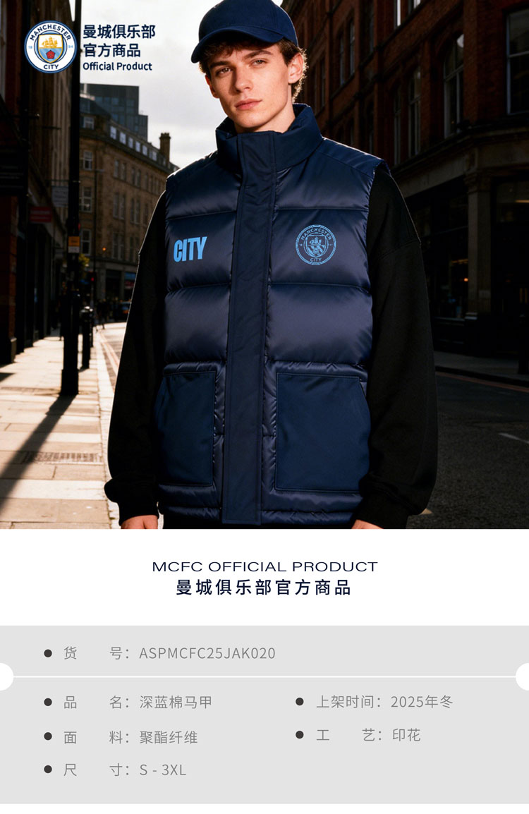 【官方正版】曼城俱乐部 | 深蓝棉马甲秋冬轻便保暖外套