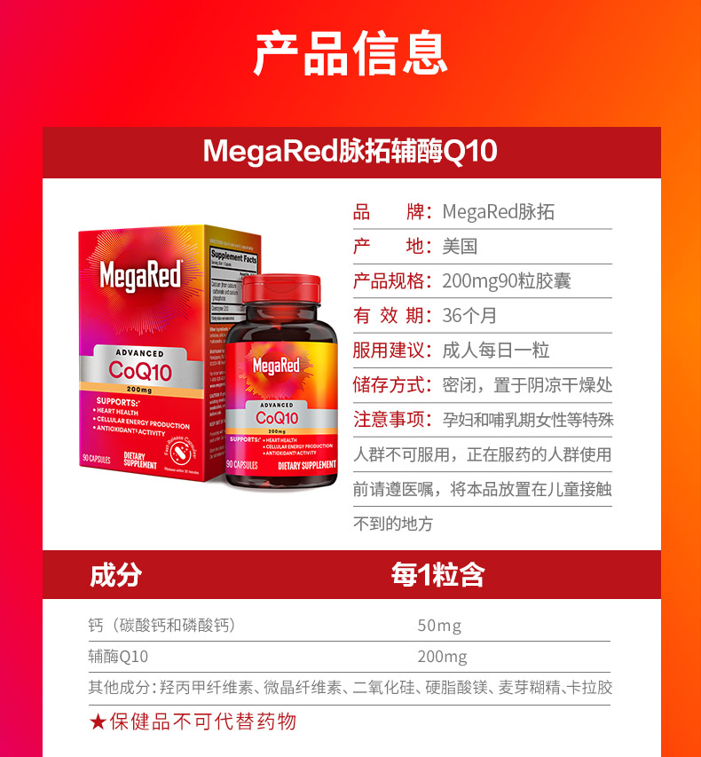 【静姐专属】MegaRed脉拓 辅酶Q10软胶囊90粒