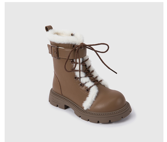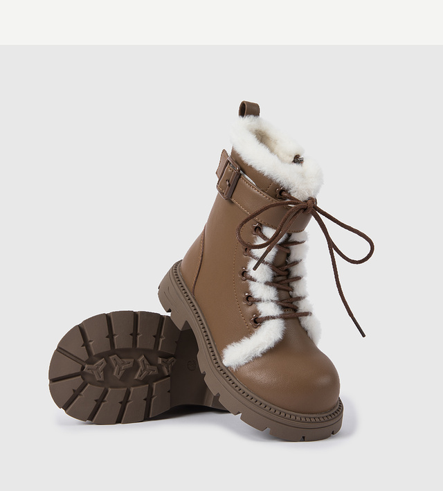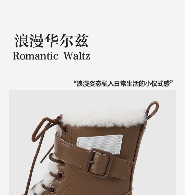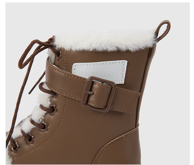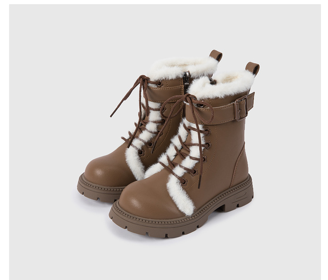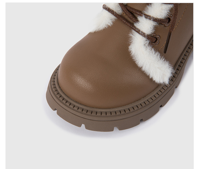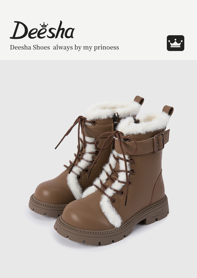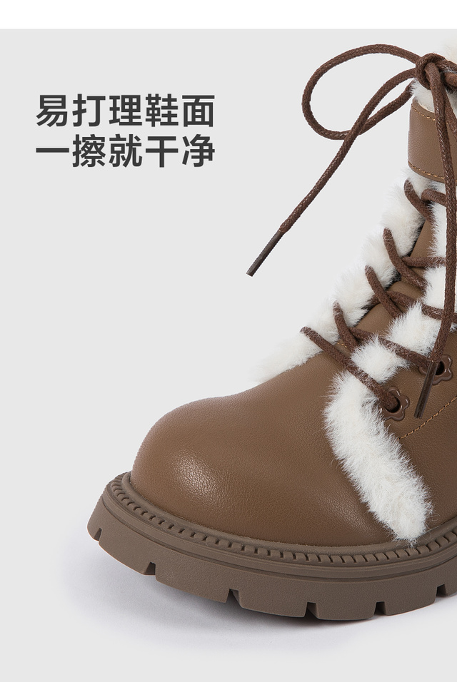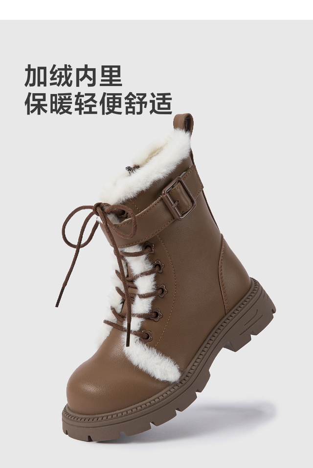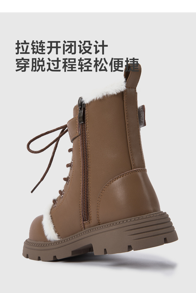 笛莎Deesha 女童童鞋2025冬季新款短筒加绒皮靴