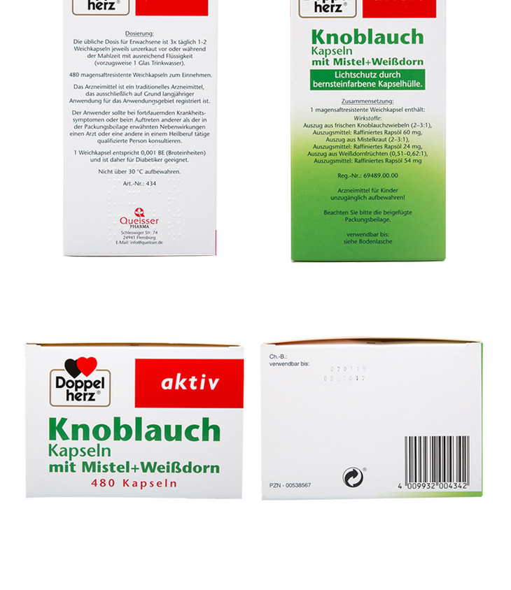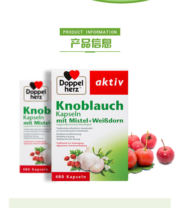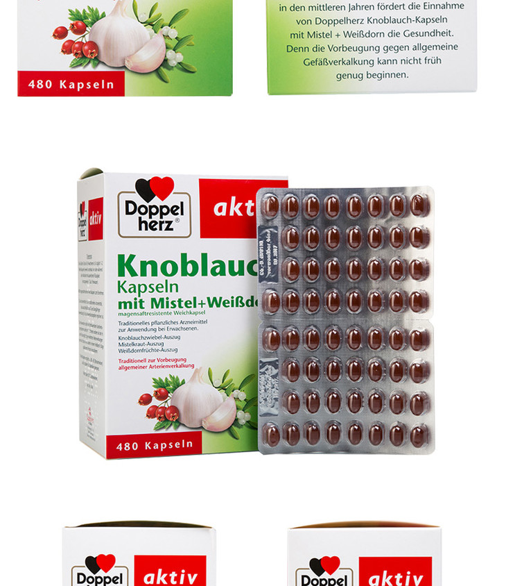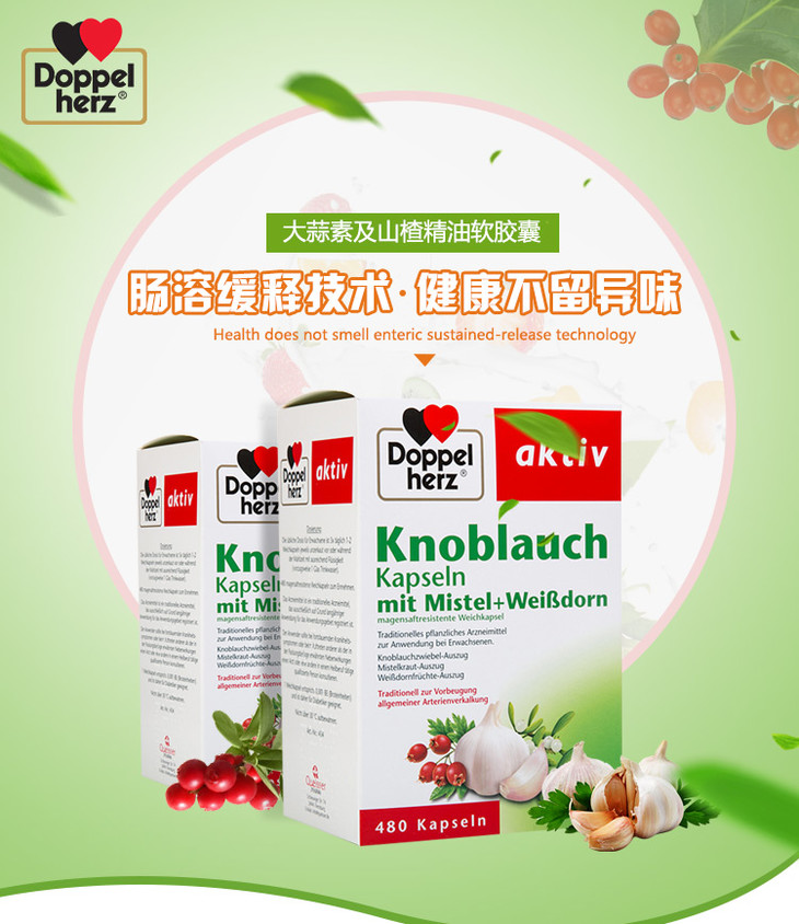 【保税仓】德国 Doppelherz双心 大蒜及山楂精油软胶囊 480粒/盒 新老版本随机发货