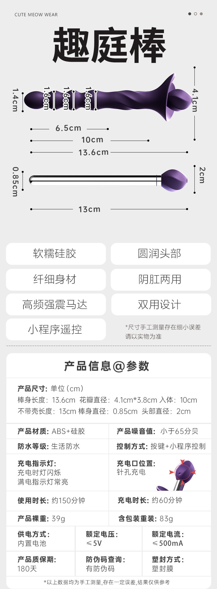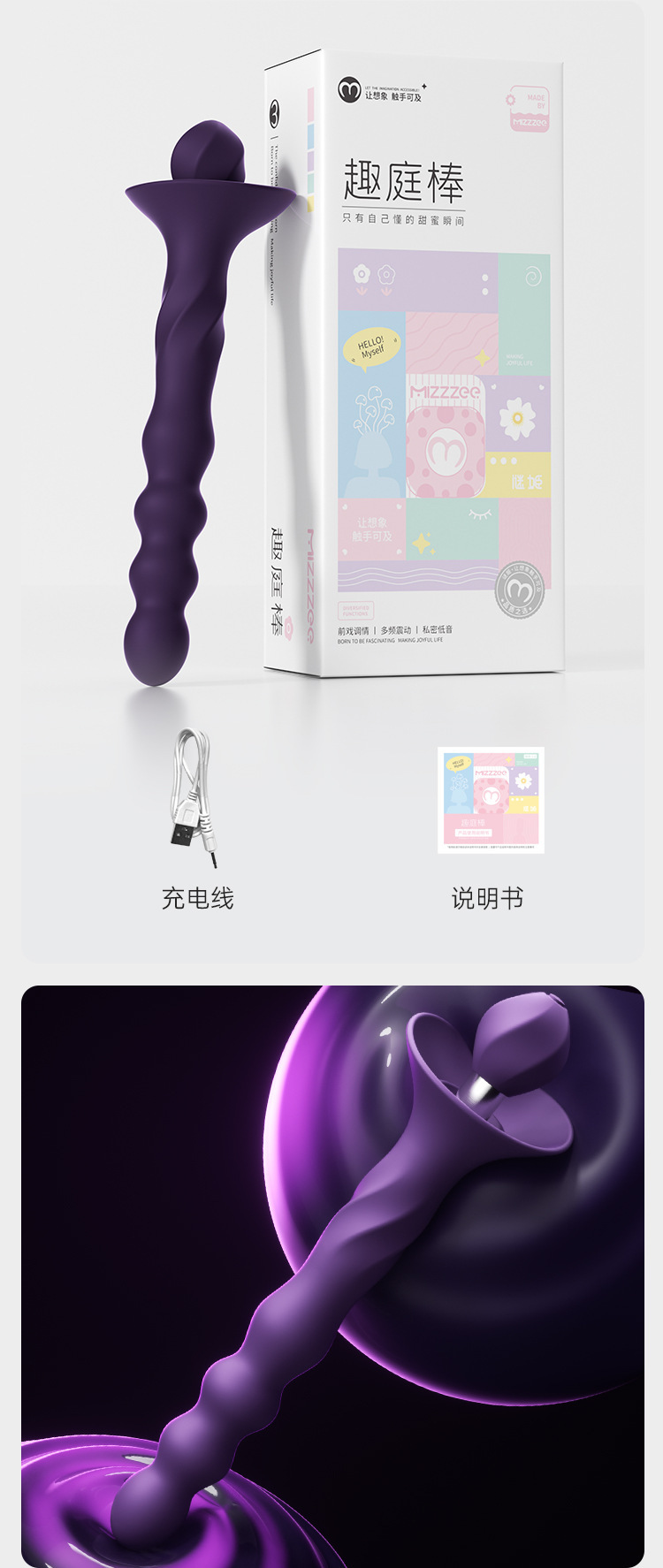 谜姬 趣庭棒女用震动棒sm后庭挑逗按摩棒女用自慰器情趣用品