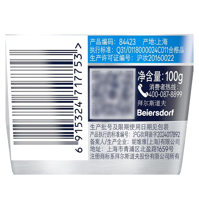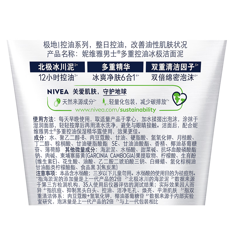 妮维雅男士冰极洁面泥100g