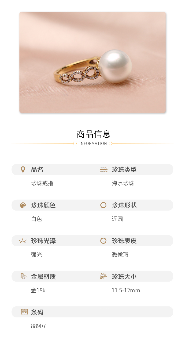 金18k(黄色)海水珍珠戒指 11.5-12mm 88907