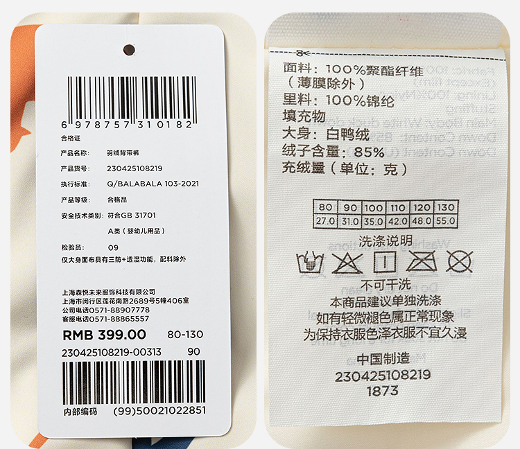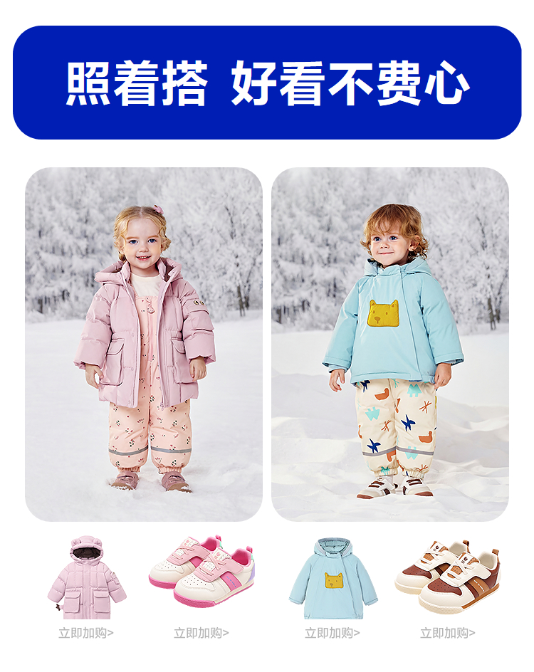 [拒水羽绒]迷你巴拉男女童宝宝羽绒裤2025冬新品三防保暖裤子