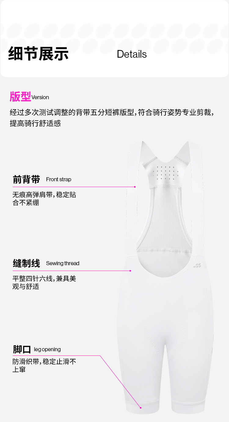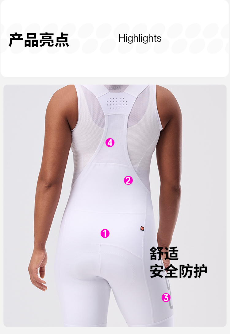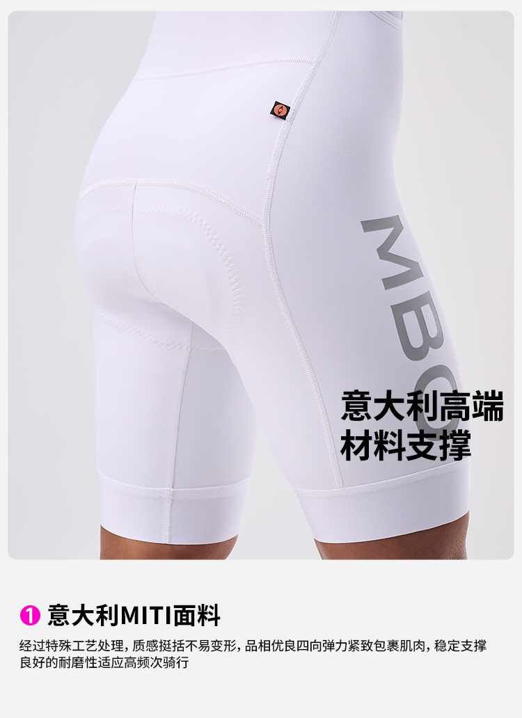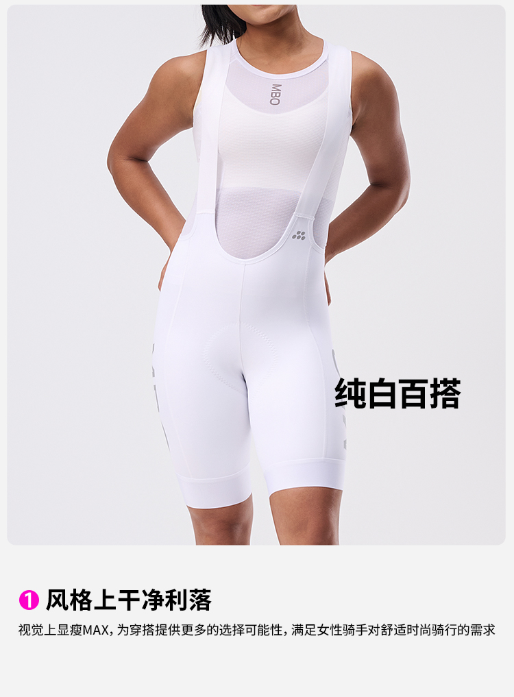 MBO女子背带骑行裤短裤T315时尚纯白抗透骑行裤25年春夏新款