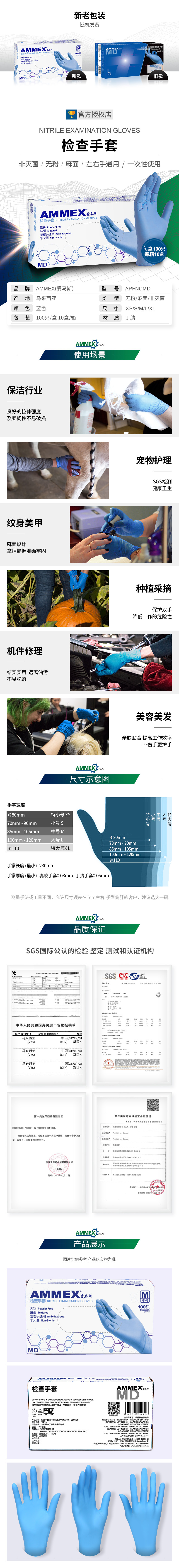 爱马斯AMMEX一次性手套蓝色丁腈检查无粉丁晴牙科100只APFNCMD
