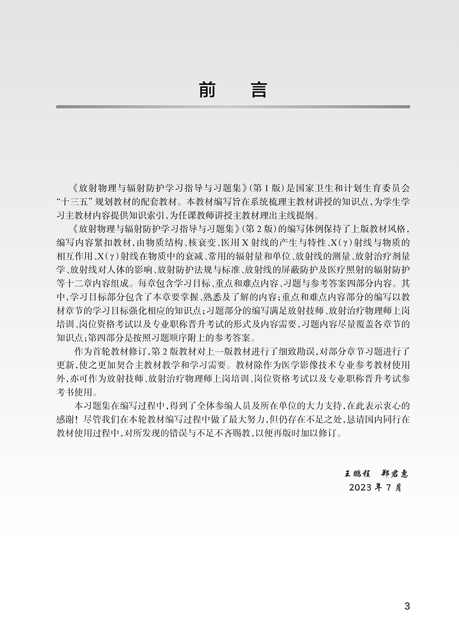 放射物理与辐射防护学习指导与习题集 第2版 全国高等学校十四五规划配套教材 供本科医学影像技术专业 人民卫生出版9787117357012