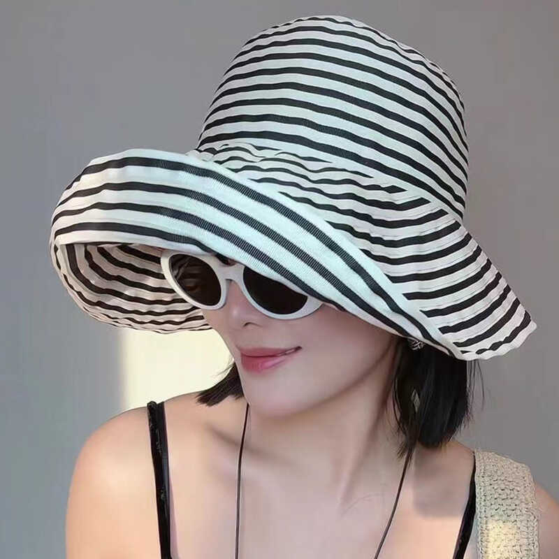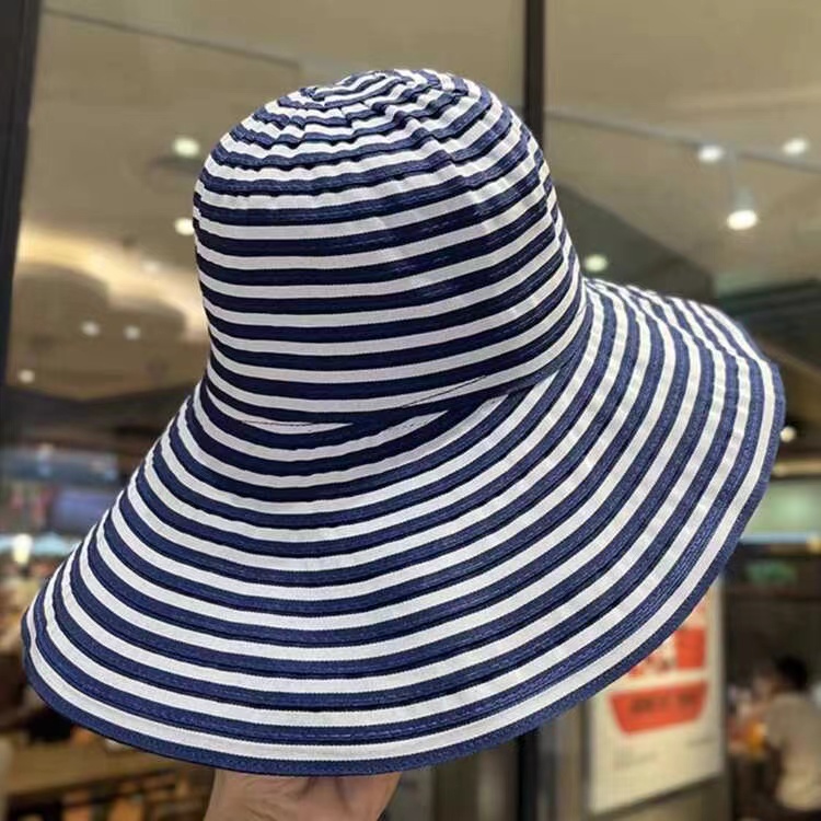 【一顶渔夫帽!遮挡夏日刺眼阳光】日系可折叠夏季条纹渔夫帽女新款长防晒帽子时尚盆帽大头围太阳帽。ry