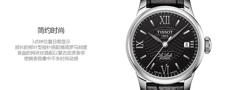 镜面 材质 | 蓝宝石水晶玻璃 | 表盘 | 精钢表壳 黑色表盘 大三针 日期显示 条字与罗马数字刻度时标 |