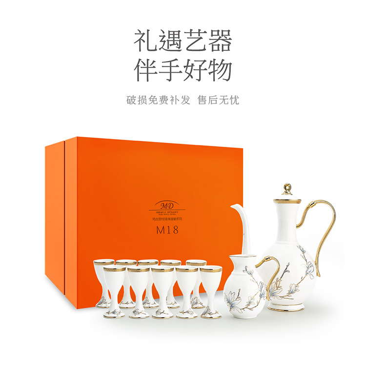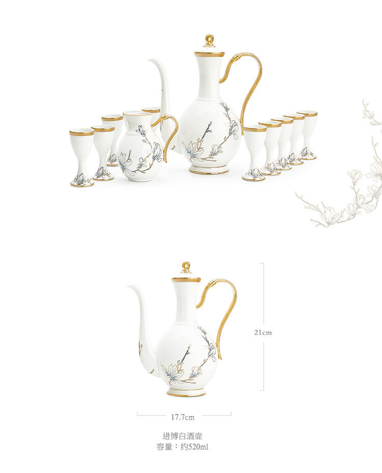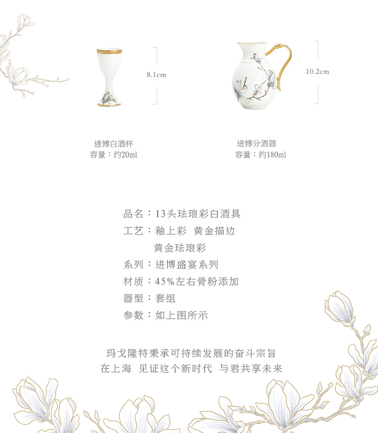 【玛戈隆特】B7F 10人份进博盛宴骨瓷白酒具套装 家用创意精致礼盒包装