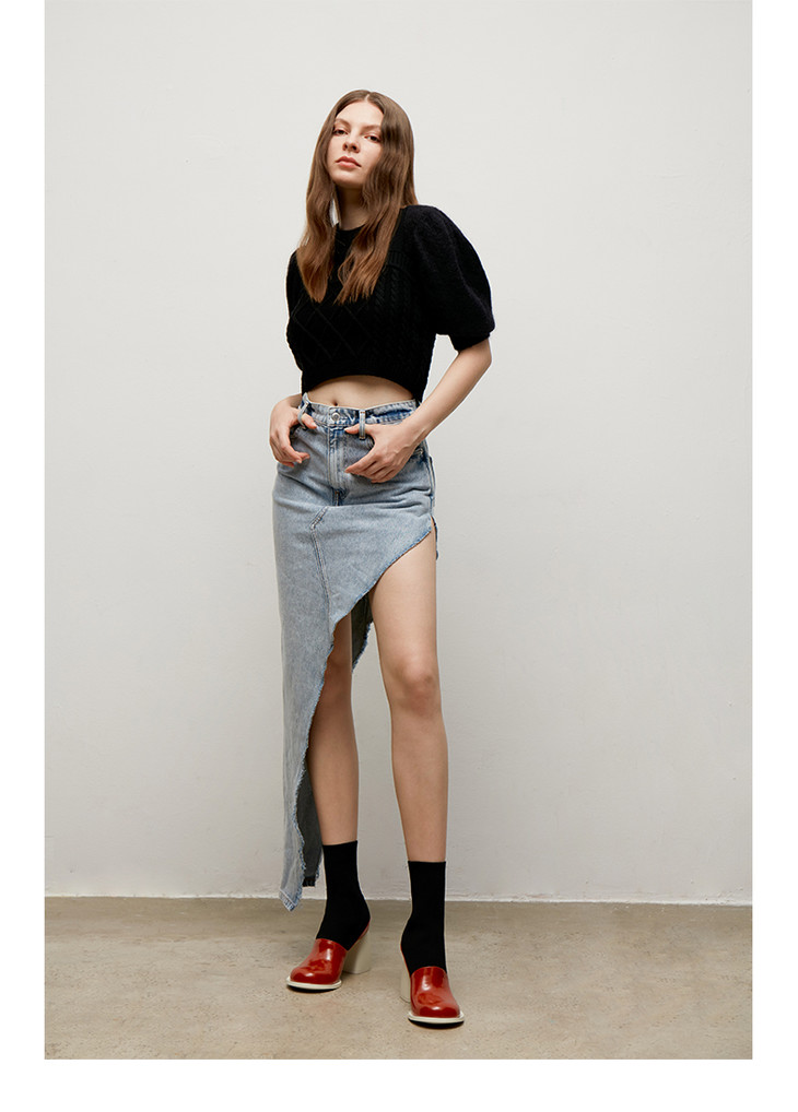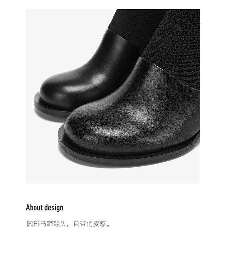 【微瑕疵不退不换】lost in echo 设计师原创 圆头牛皮弹力拼接马蹄靴 白灰色