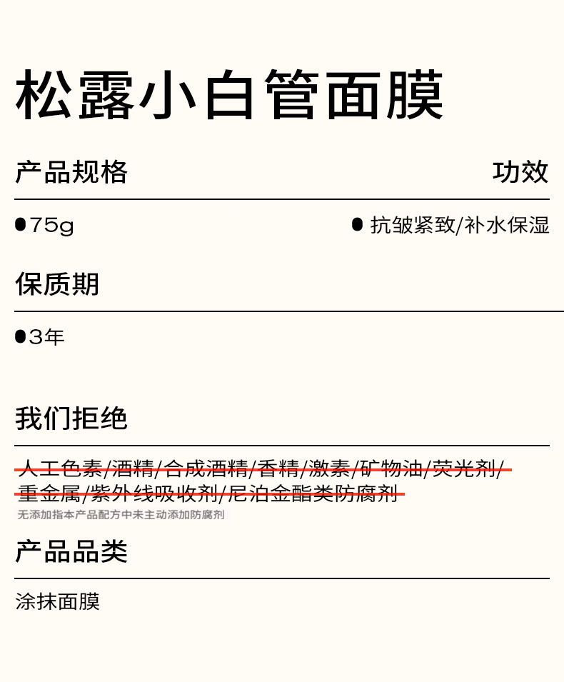 【尺码规格】:pmpm小白管75ml+白松露面膜10片