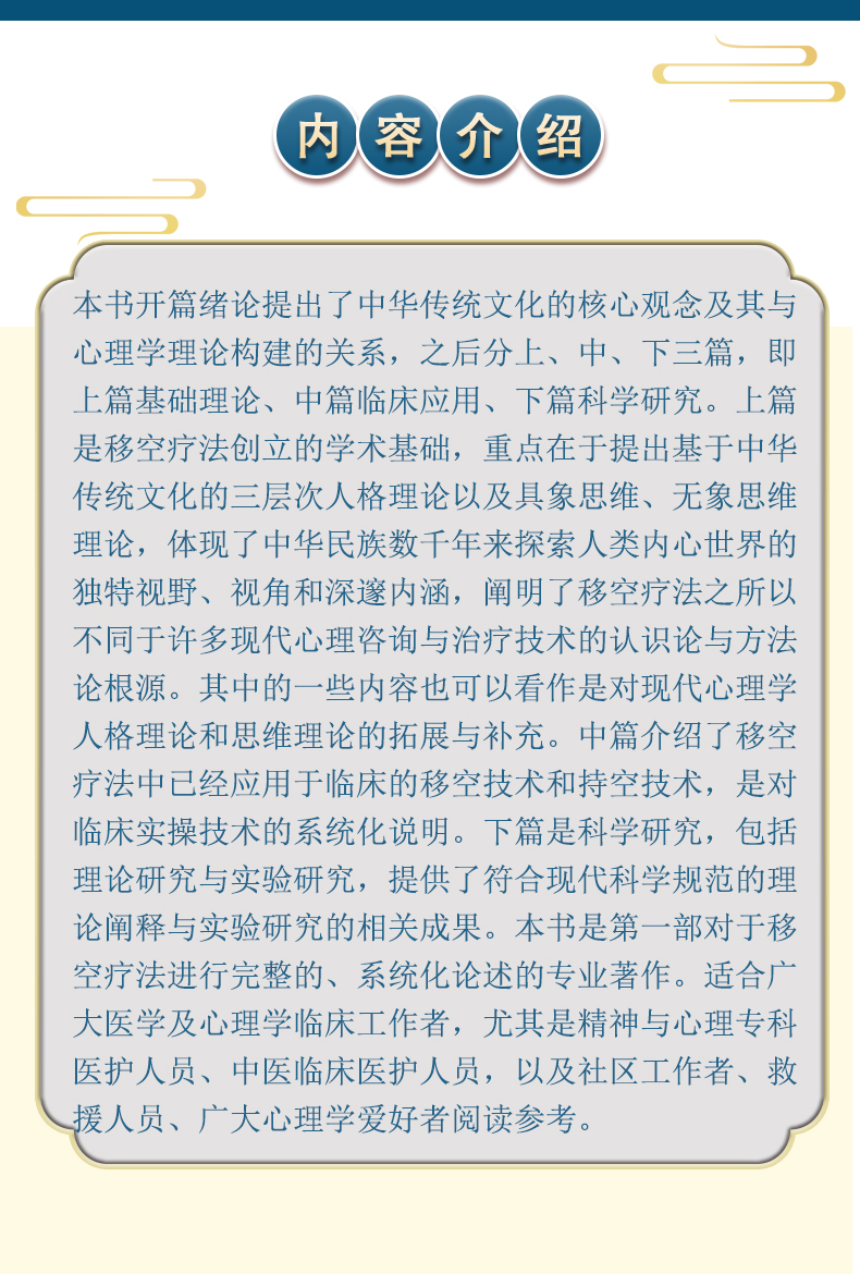 移空疗法述要 刘天君 文化核心观念对心理学理论构建的影响 心理咨询与治疗领域中影响较大的人格理论9787513289962中国中医药出版社