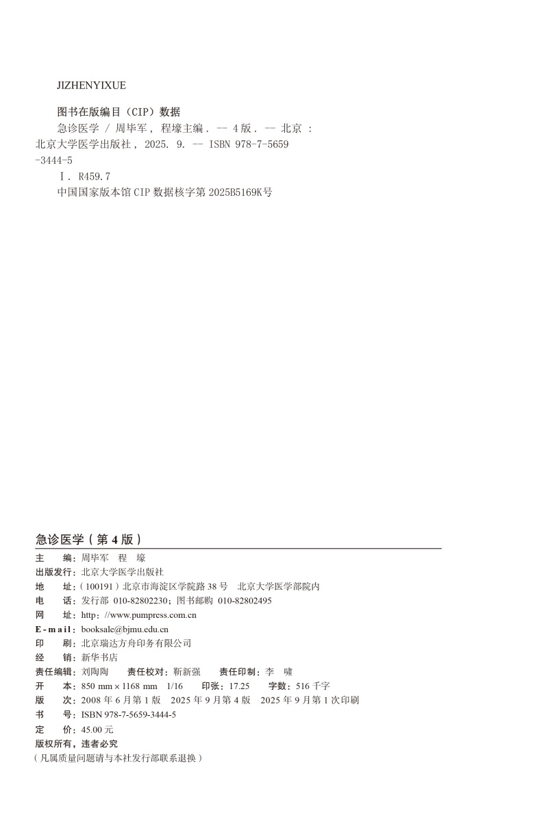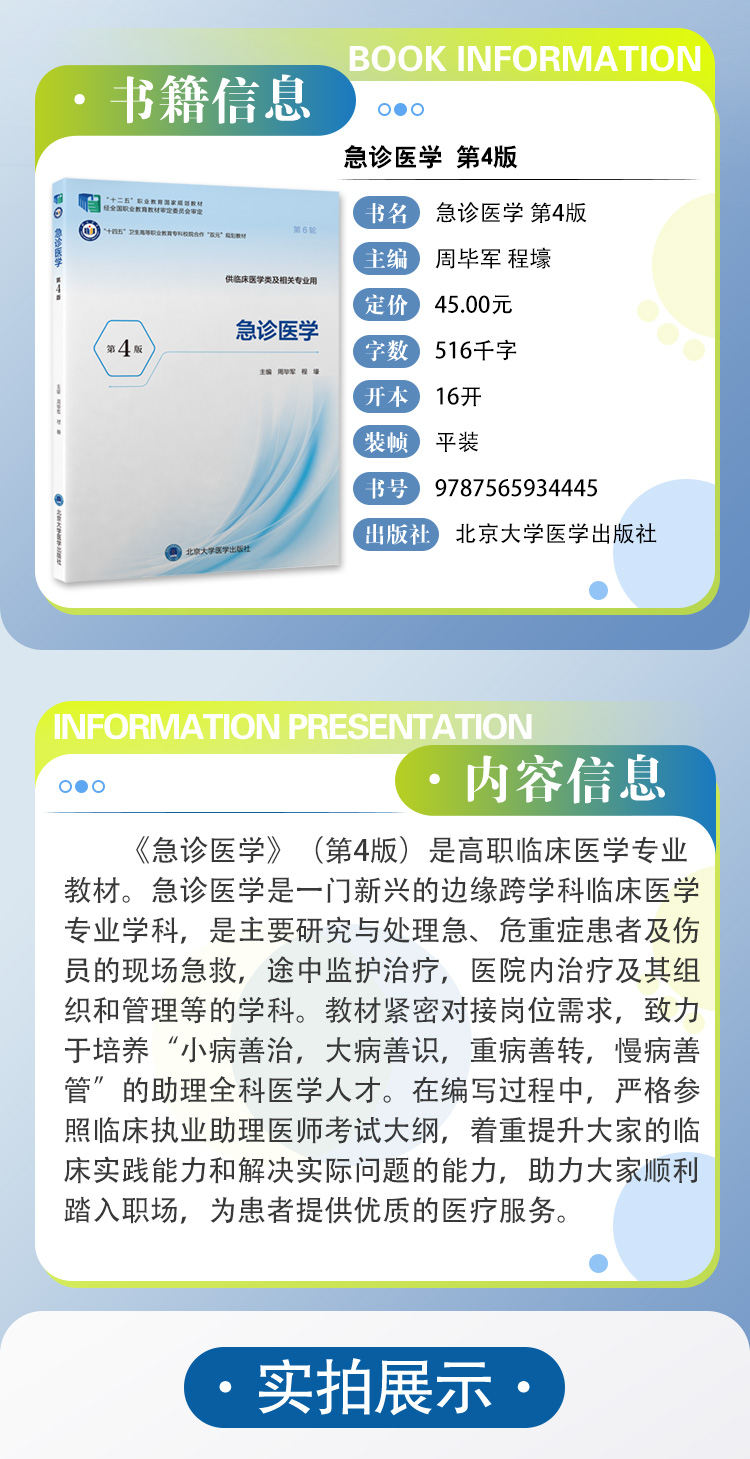急诊医学 第4四版 十四五卫生高等职业教育专科校院合作“双元”规划教材 周毕军 程壕 供临床医学类及相关专业用北京大学医学出版社