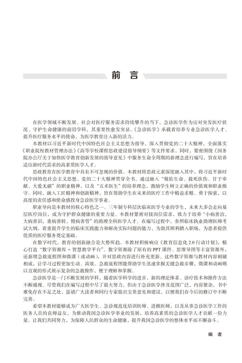 《急诊医学》(第4版)是高职临床医学专业教材。急诊医学是一门新兴的边缘跨学科临床医学专业学科,是主要研究与处理急、危重症患者及伤员的现场急救,途中监护治疗,医院内治疗及其组织和管理等的学科。教材紧密对接岗位需求,致力于培养“小病善治,大病善识,重病善转,慢病善管”的助理全科医学人才。在编写过程中,严格参照临床执业助理医师考试大纲,着重提升大家的临床实践能力和解决实际问题的能力,助力大家顺利踏入职场,为患者提供优质的医疗服务。