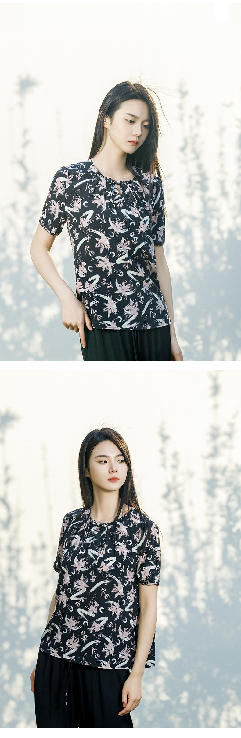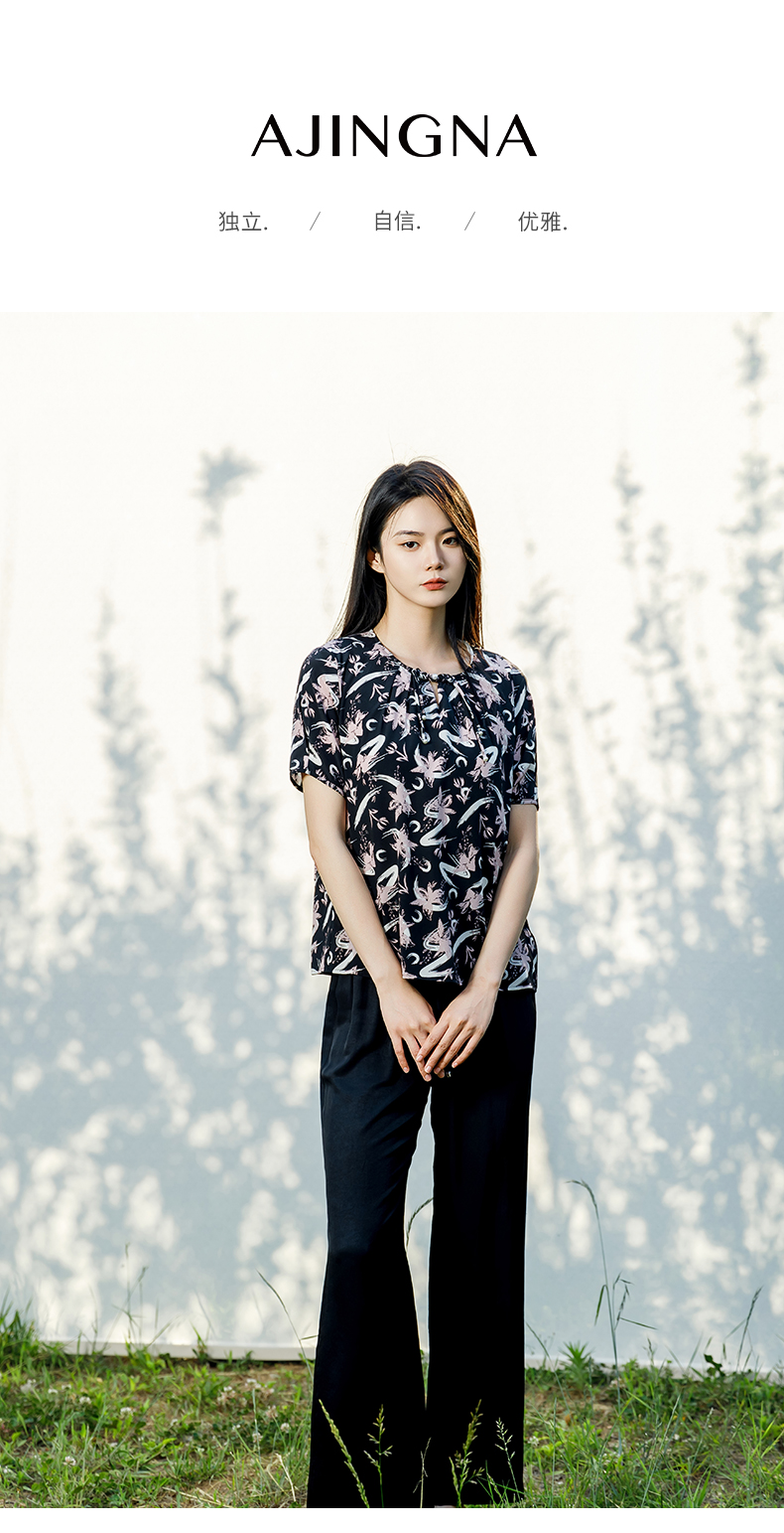 【商场同款】阿菁娜2024夏季新款宽松优雅设计感小衫A30X202033