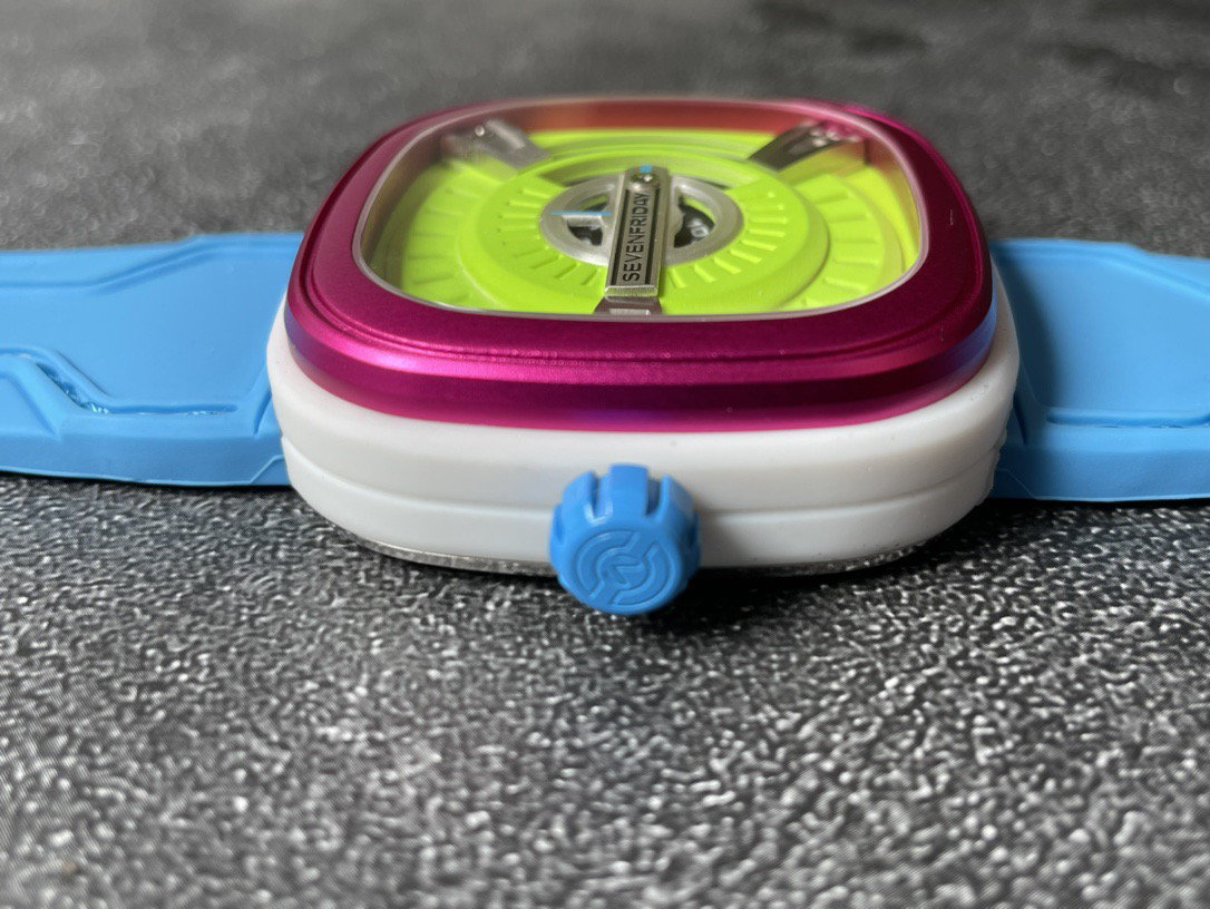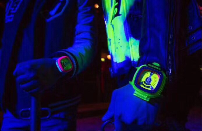 SEVENFRIDAY携手艺术大师Tomyboy带来限量版M2/03,整个表盘全夜光的七个星期五来袭,用色彩来表达自我,绝对夜店撩妹神器,强荧光效果,糖果色搭适合潮人和妹子佩戴。