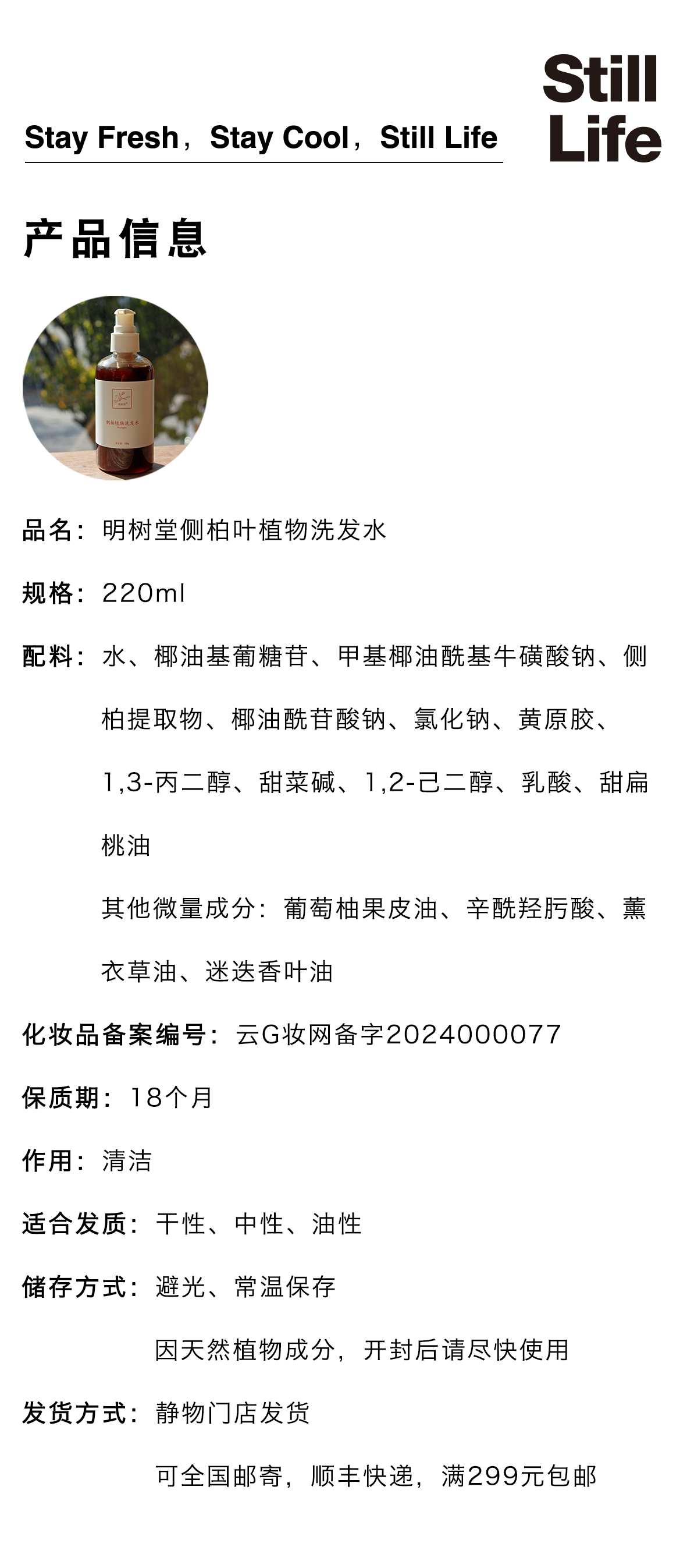 侧柏植物洗发水220ml|明树堂