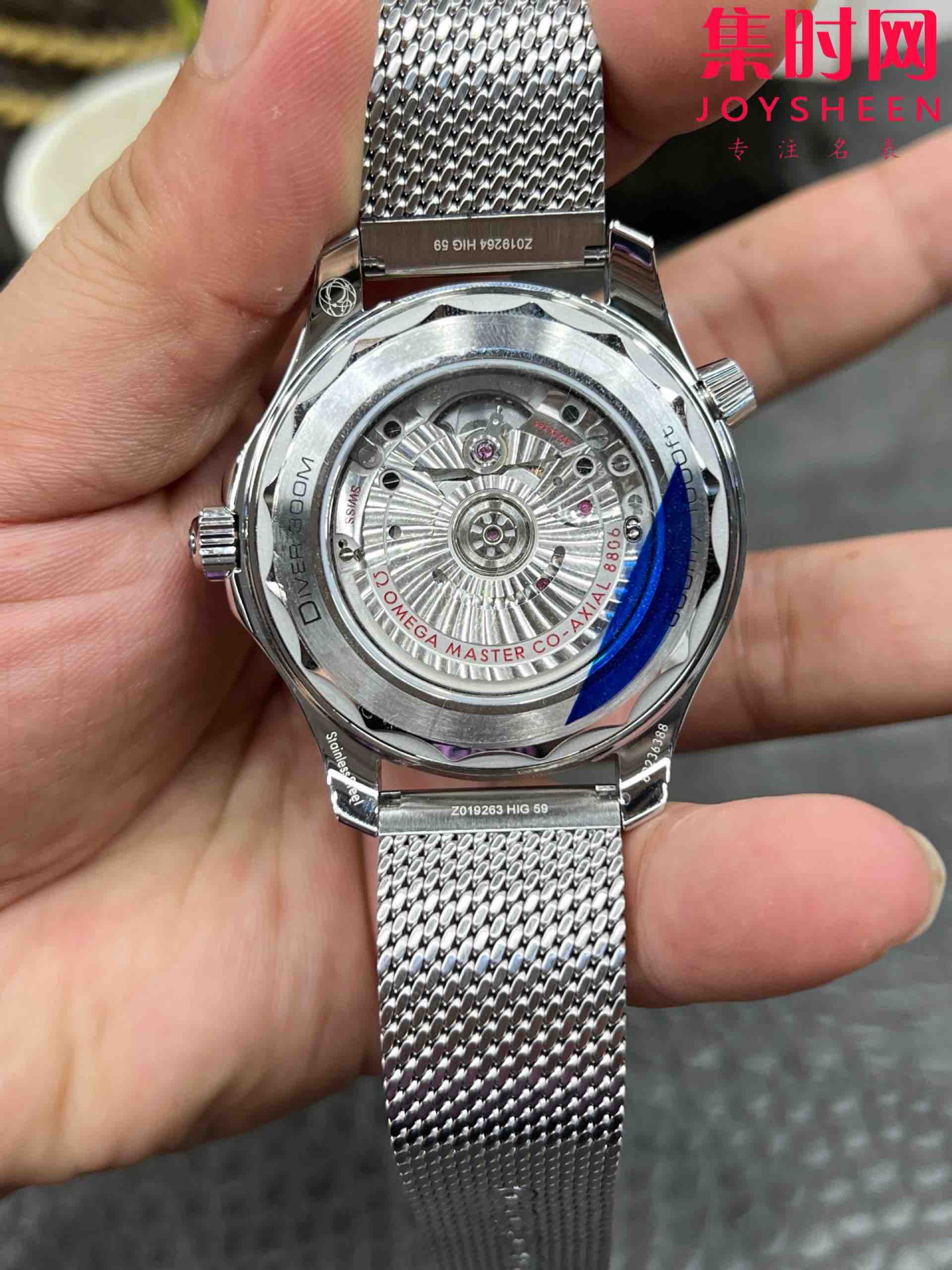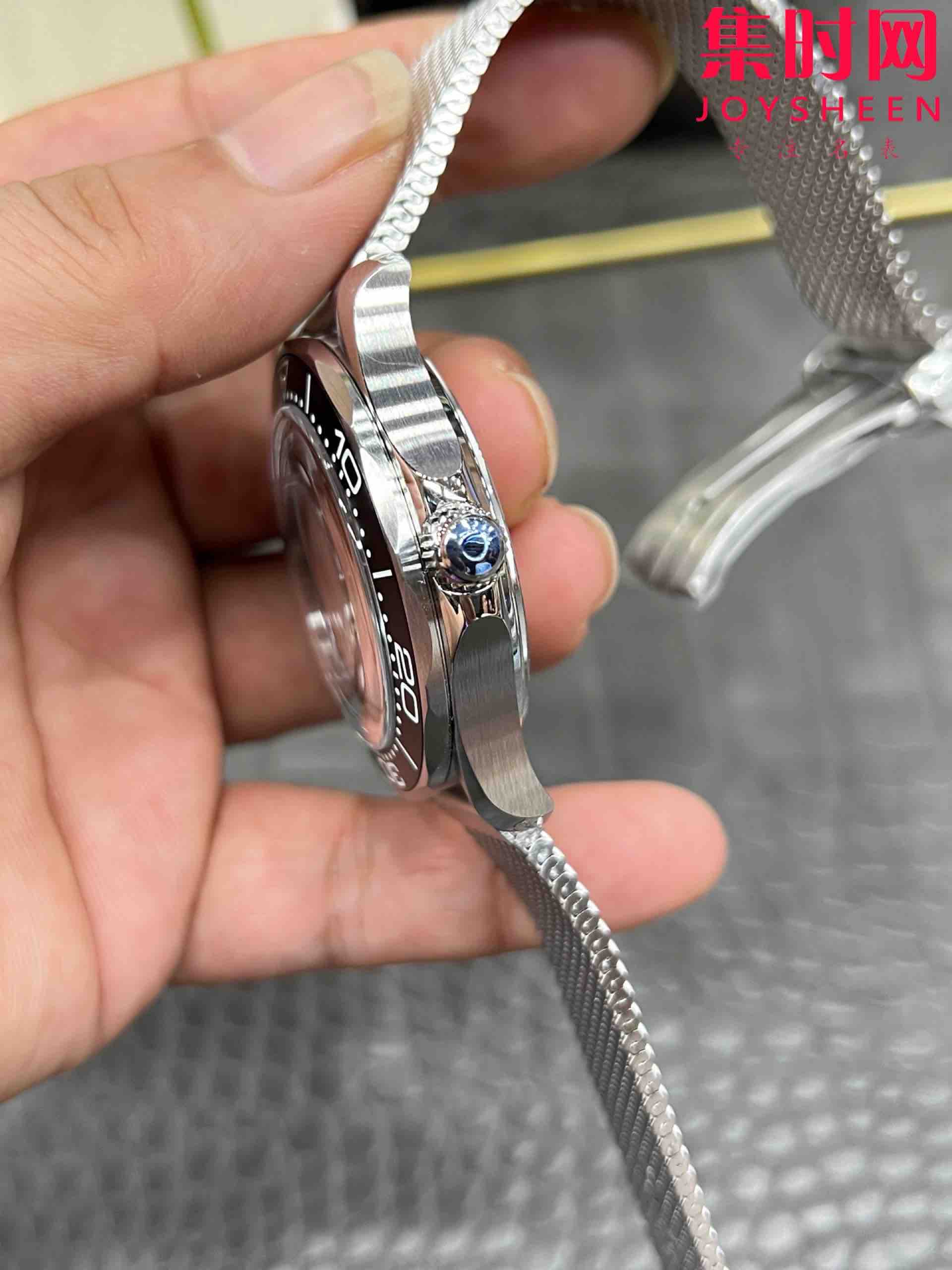 VS欧米茄新款海马300米系列 VS无历海马007邦德 男士腕表 黑盘铝圈,黑色铝圈有颗粒哑光效果,铝圈刻度有超级夜光,向上隆起的蓝宝石泡泡镜,复古效果一下就来了~搭载VS定制Cal.8806自动上链机械机芯,316L精钢表壳 复古蓝宝石泡泡镜 316L精钢米兰带原装折叠扣 同时更新官网第二代"平头"网带更咬合带头不易掉。复古007 值得拥有!