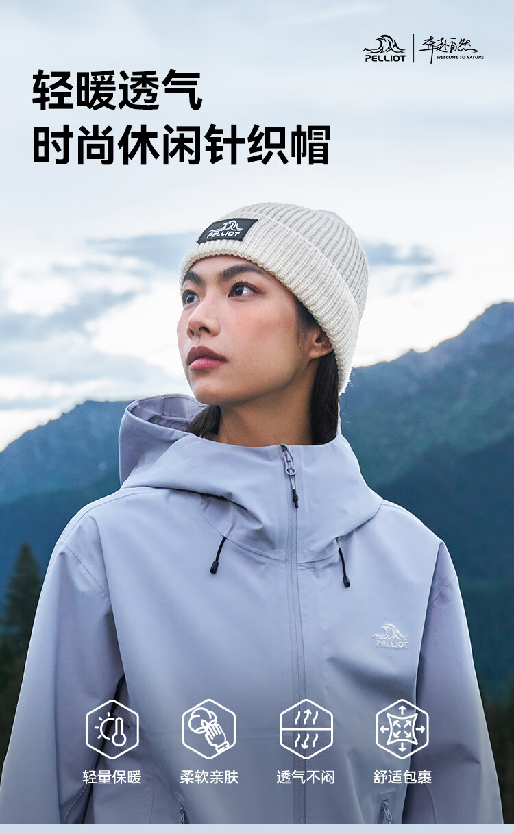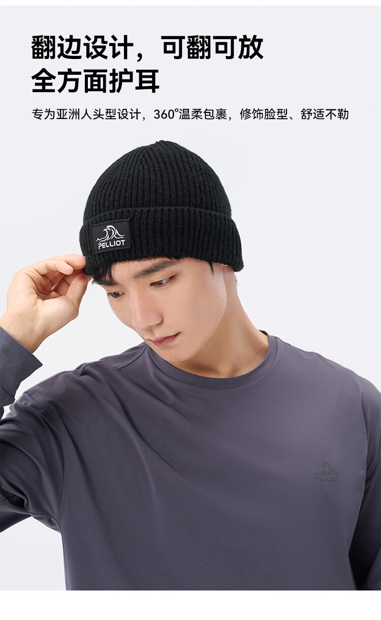 伯希和(Pelliot)户外针织帽女防风保暖抗寒登山滑雪运动骑行轻弹舒适冷帽男164334405