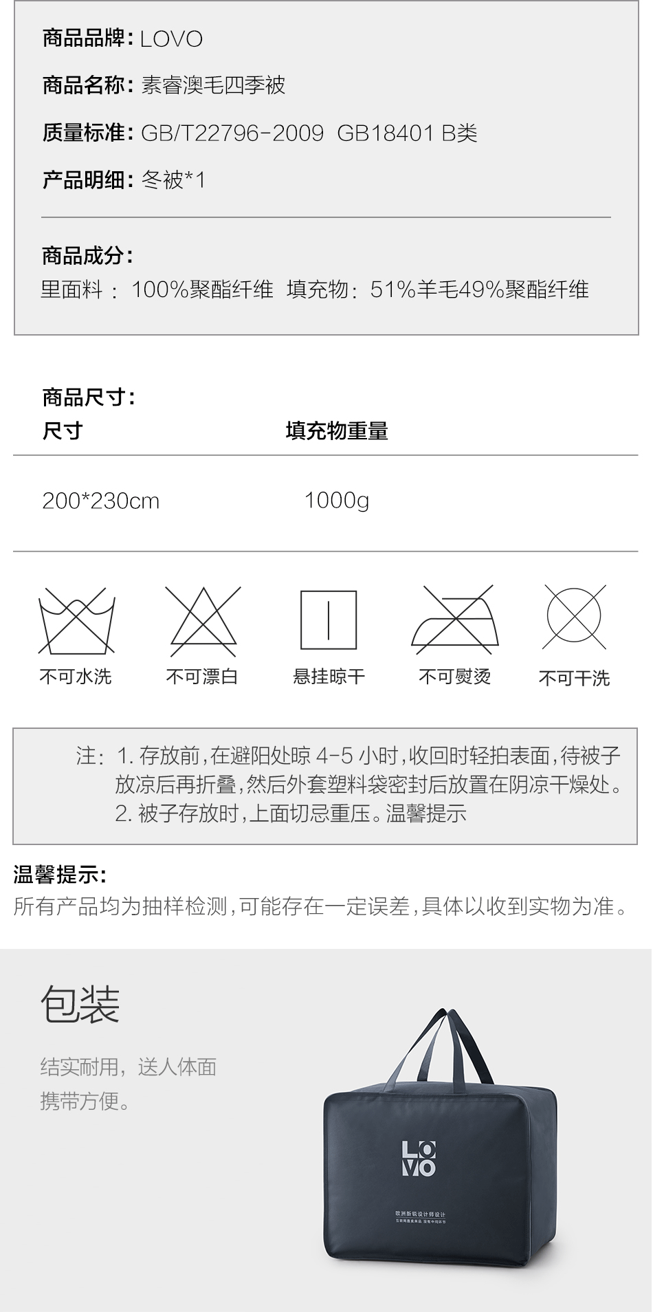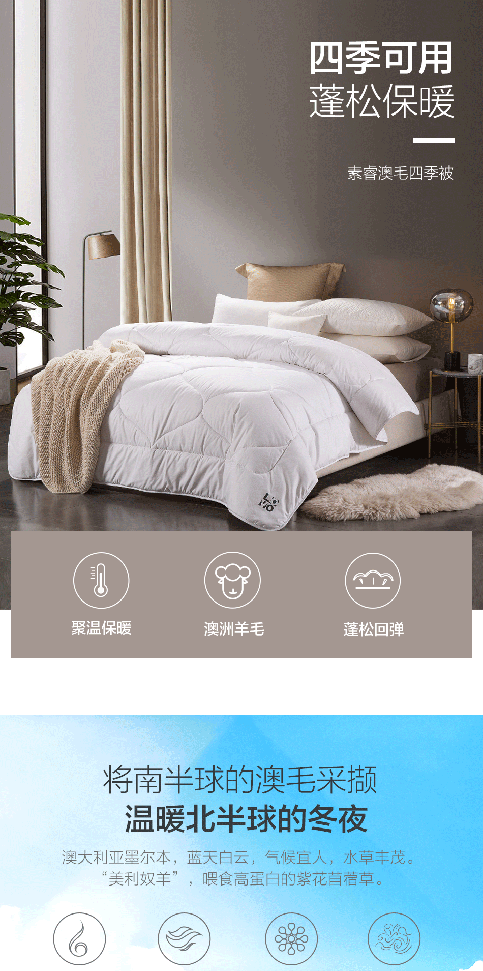 LOVO(罗莱旗下出品) 素睿澳毛四季被 200*230cm