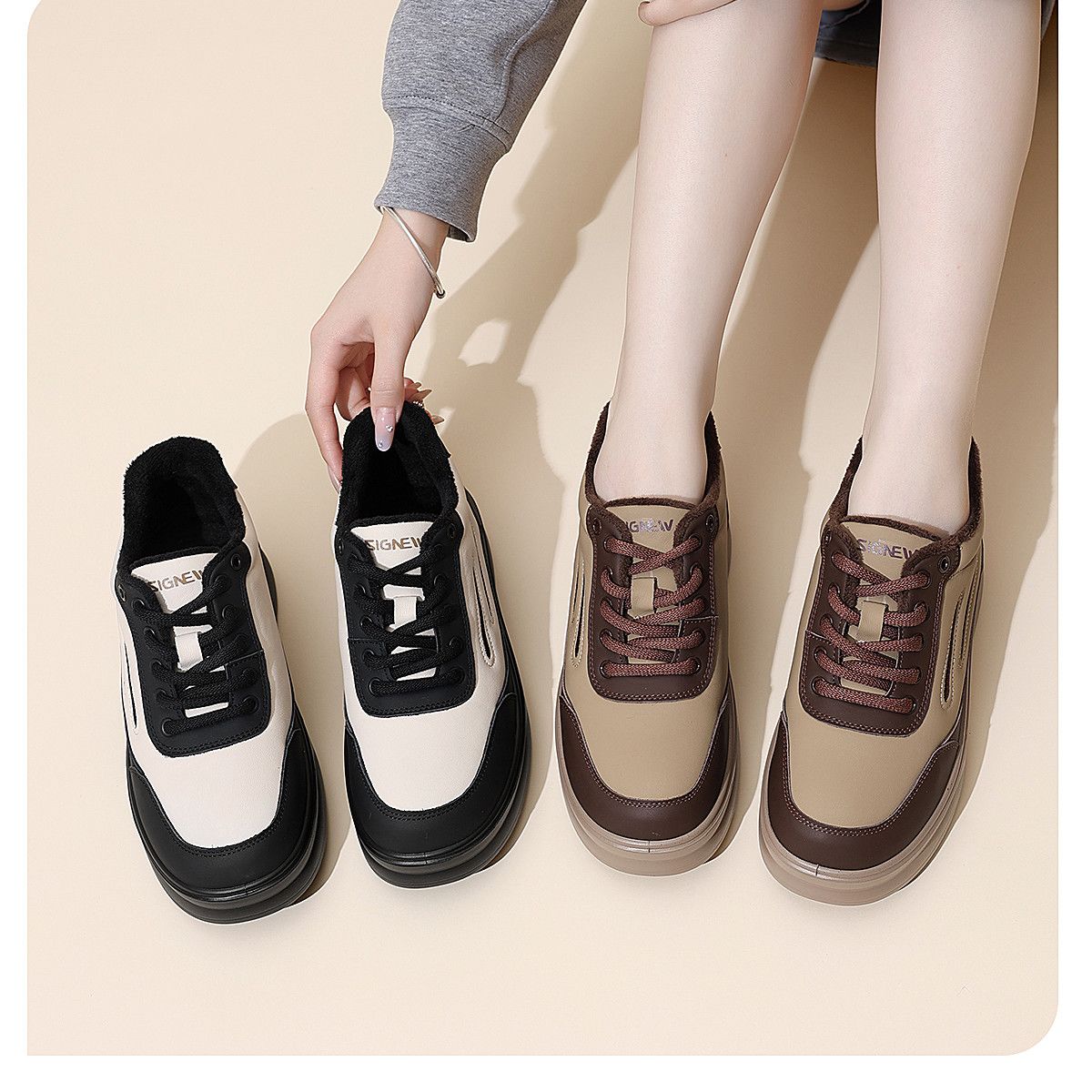 信诺妈妈鞋加绒保暖厚底高帮棉鞋2025冬季新款软底舒适休闲鞋女鞋5M653-12TD