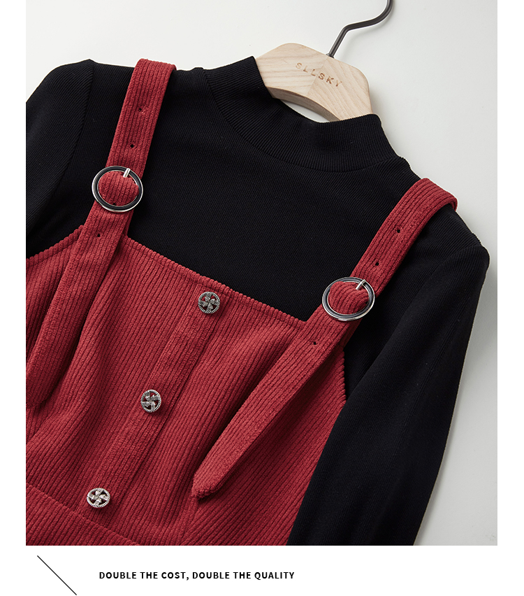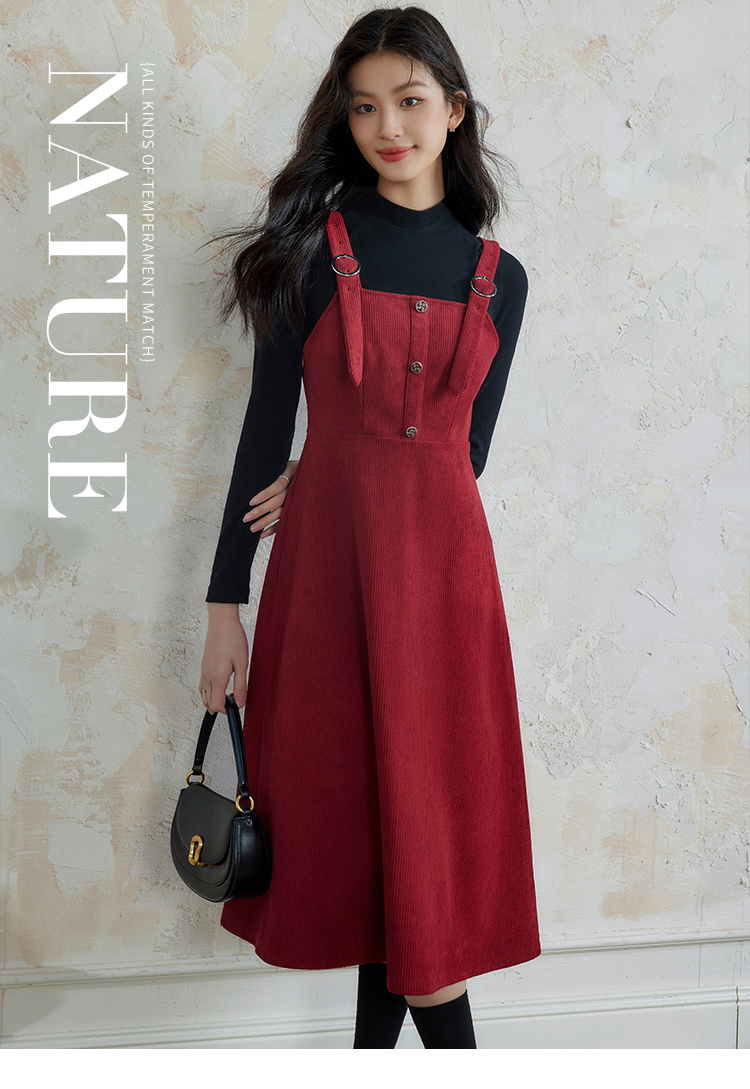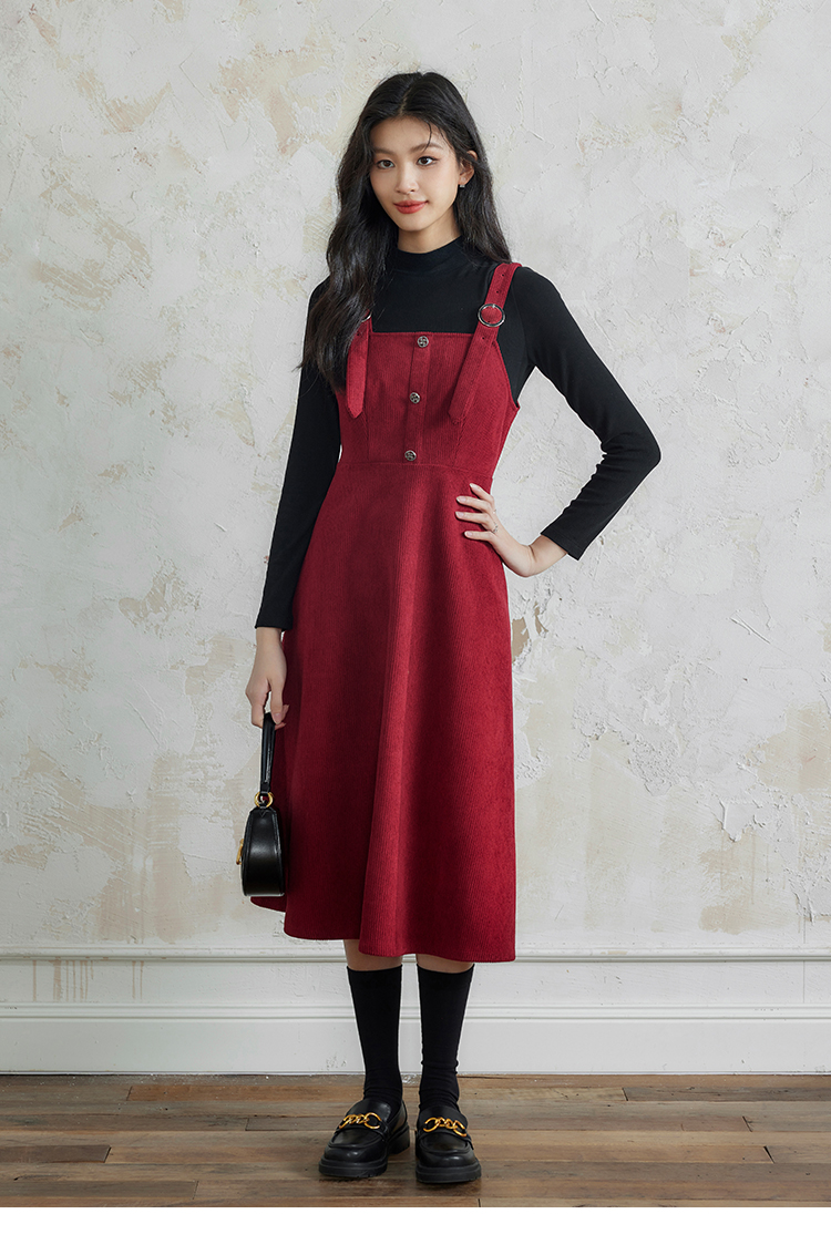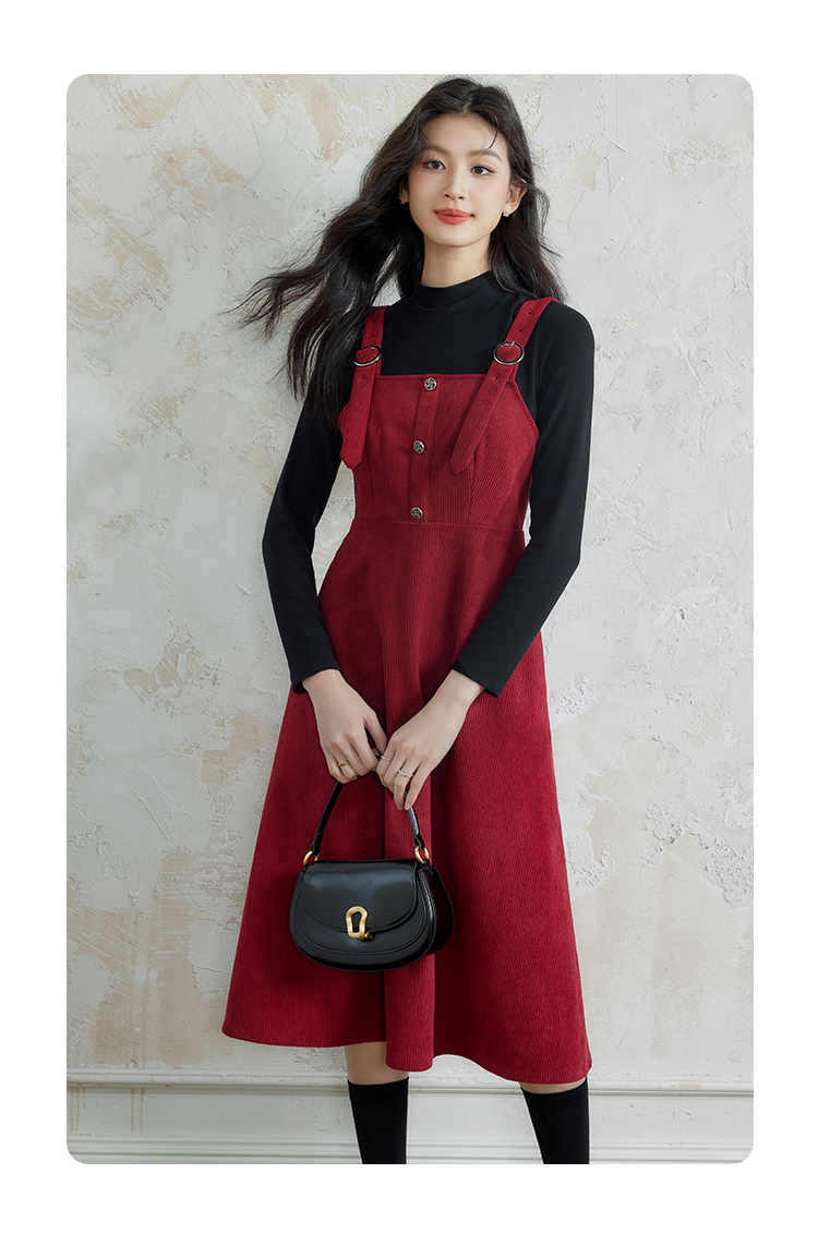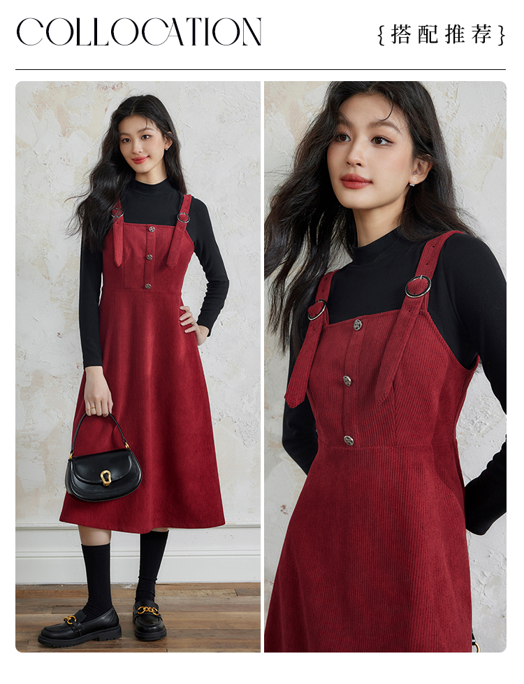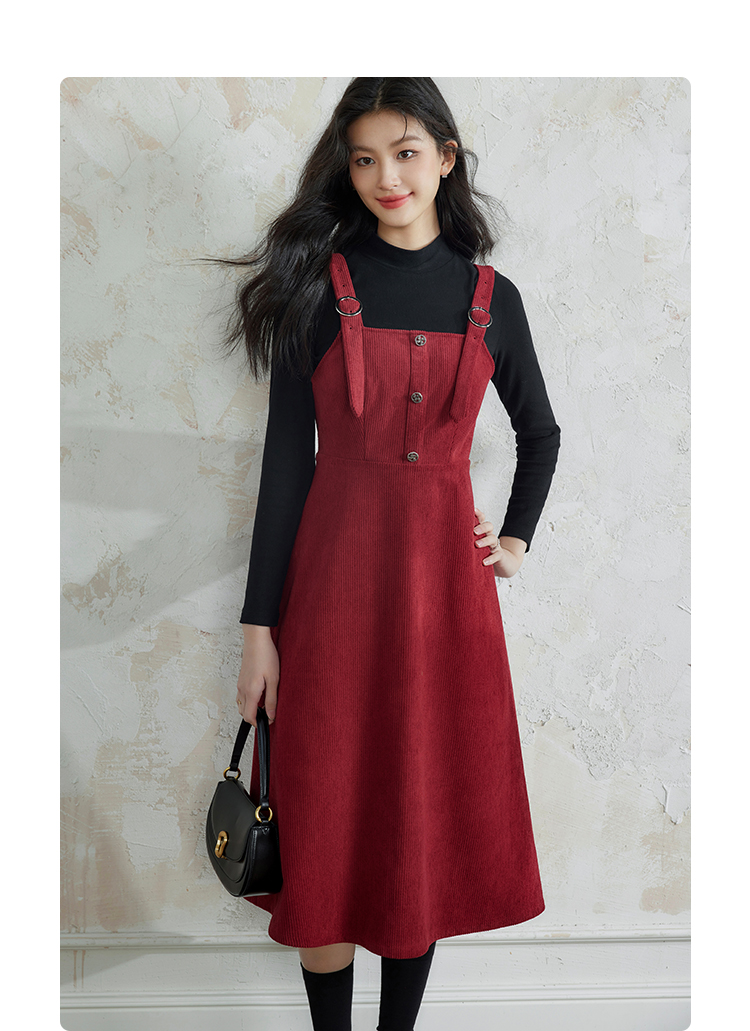 【断码清仓】熙世界学院风背带连衣裙套装女秋冬保暖衣裙子两件套