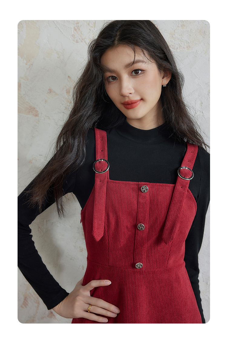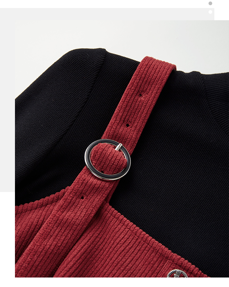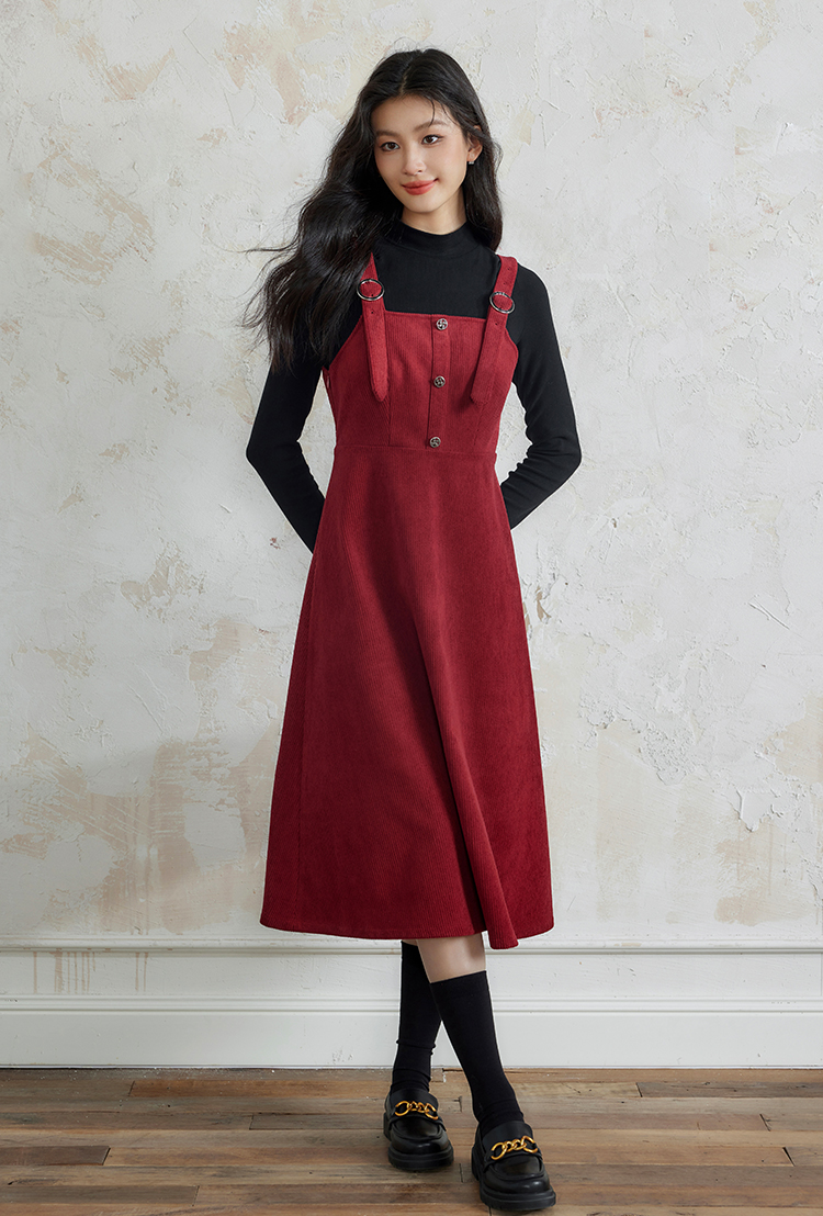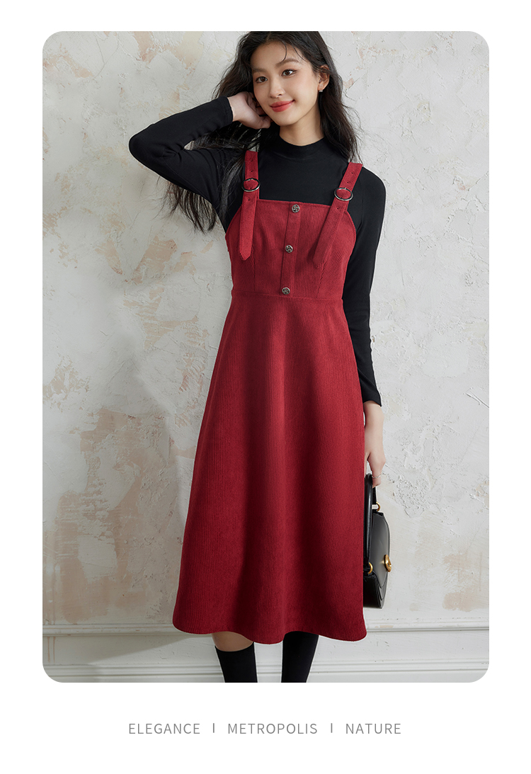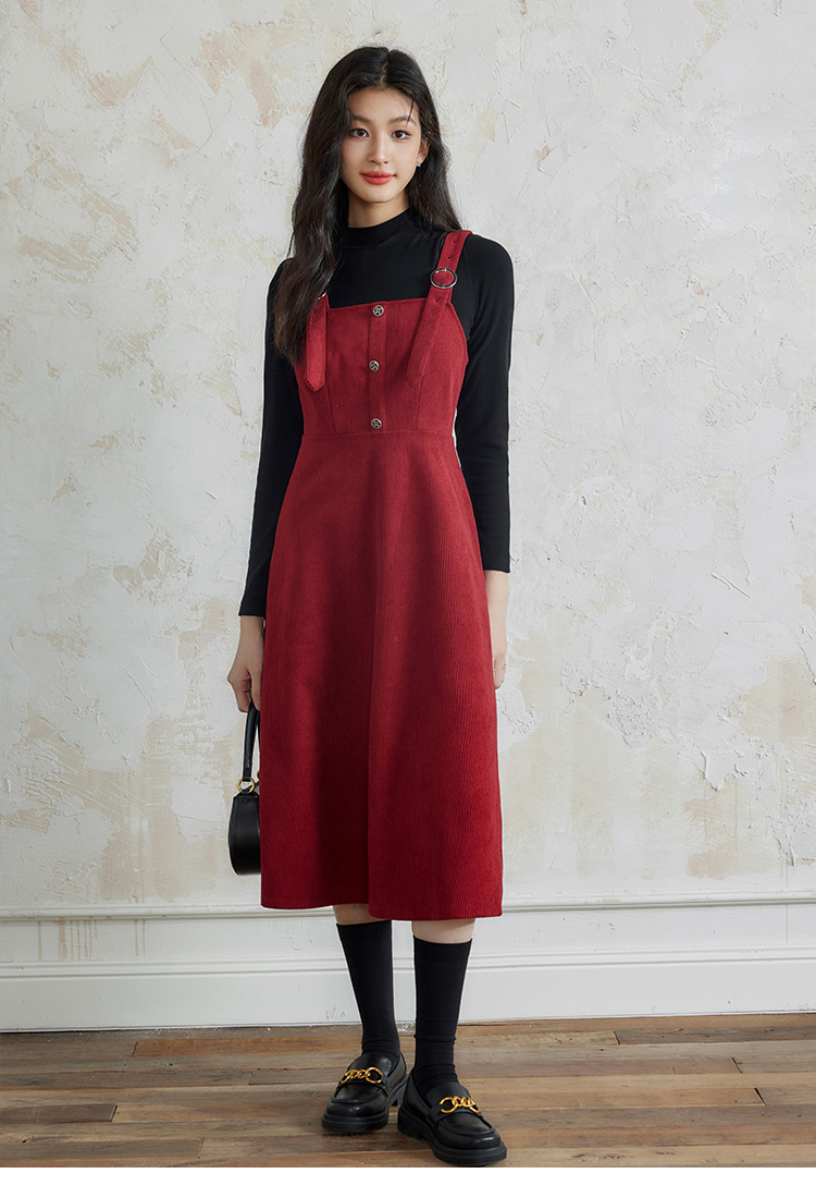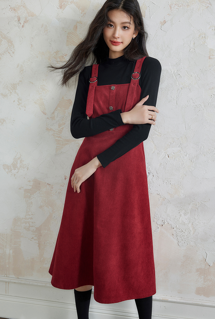 【断码清仓】熙世界学院风背带连衣裙套装女秋冬保暖衣裙子两件套